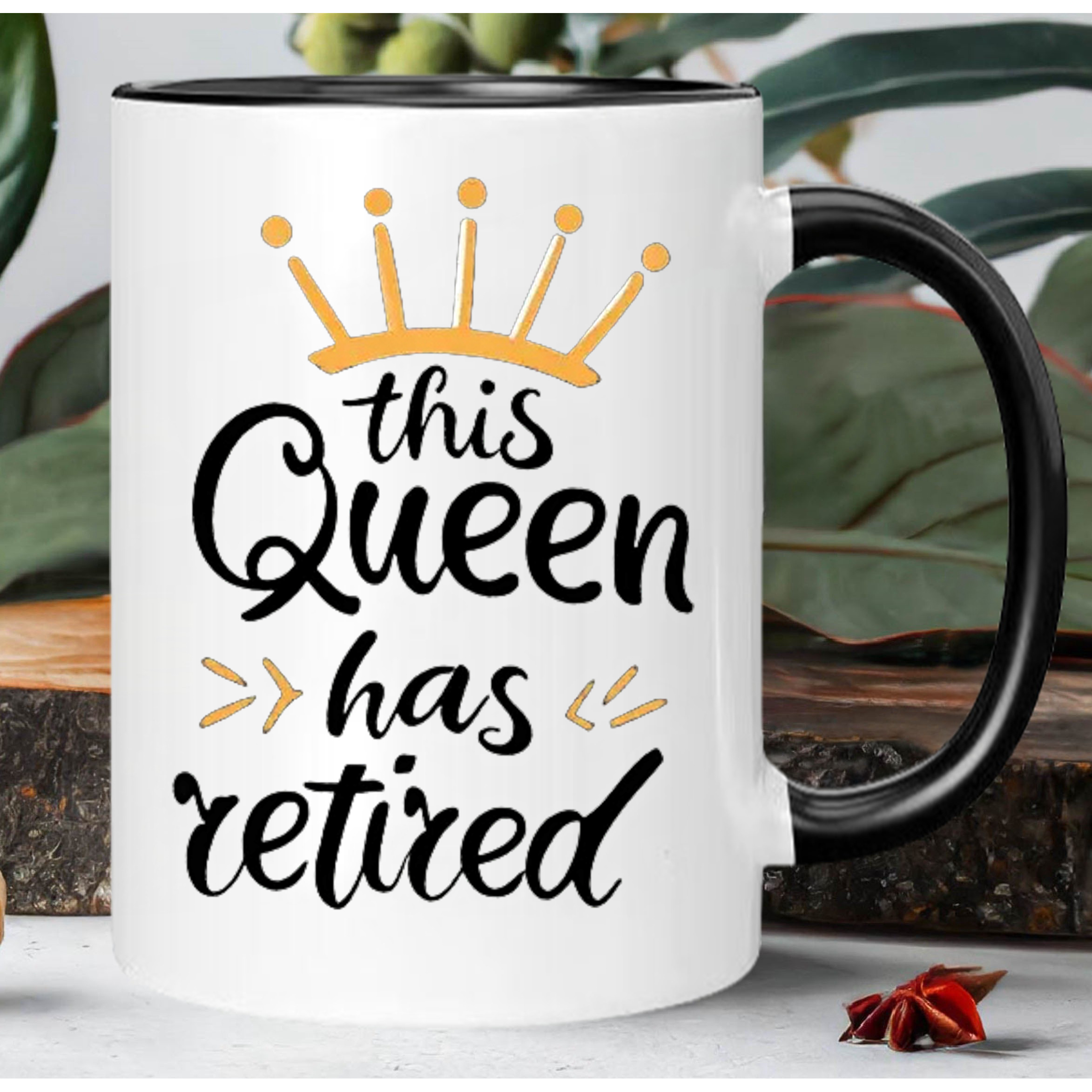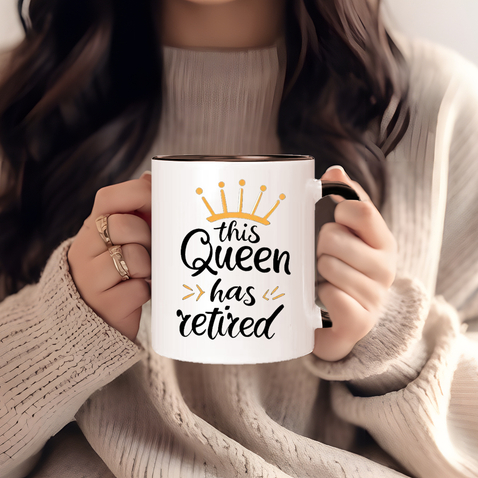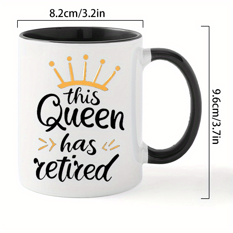 Ceramic Coffee Mug for Women "This Queen Has Retired" - Insulated Reusable Cup, Hand Wash Only, Multipurpose Gift for Retirement