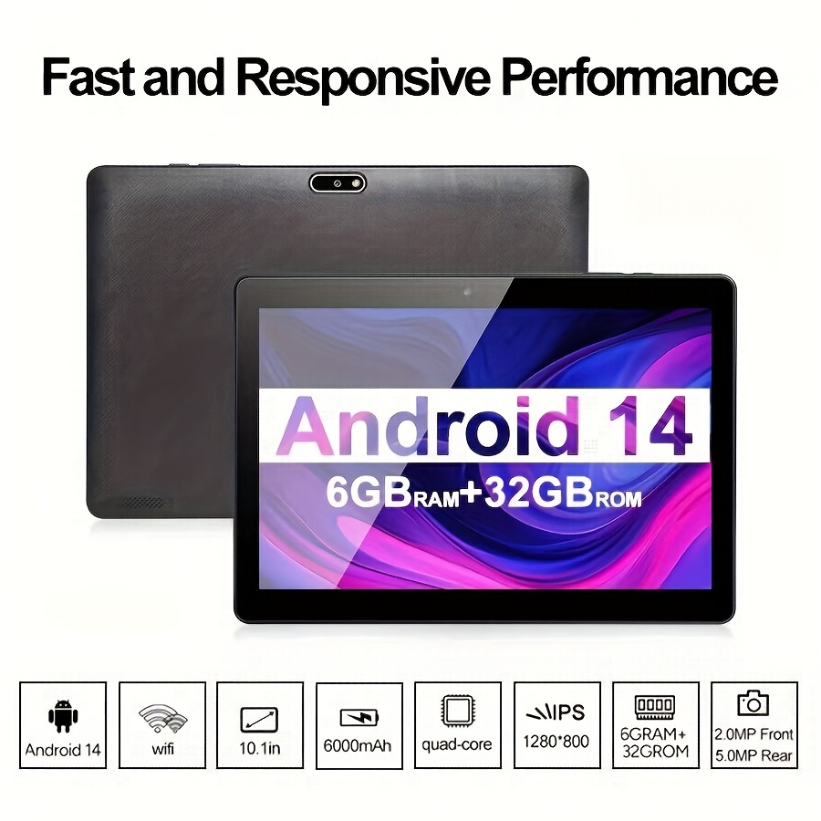10.1 Inch Android 14 Tablet Featuring 6GB (3GB+3GB) RAM, 32GB Storage, 6000Mah Battery, And a Quad Core IPS HD Touchscreen - Order Yours Today, Tablet, Pad, Tablet, Pad