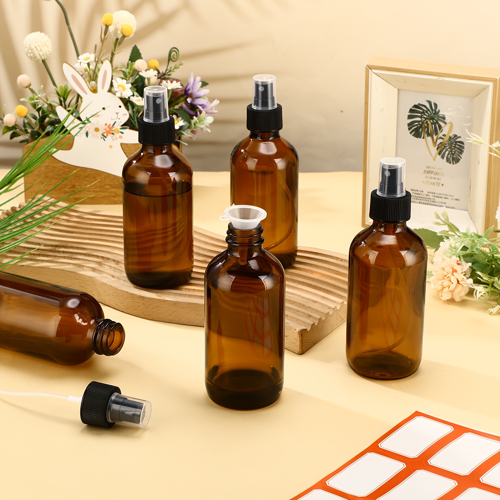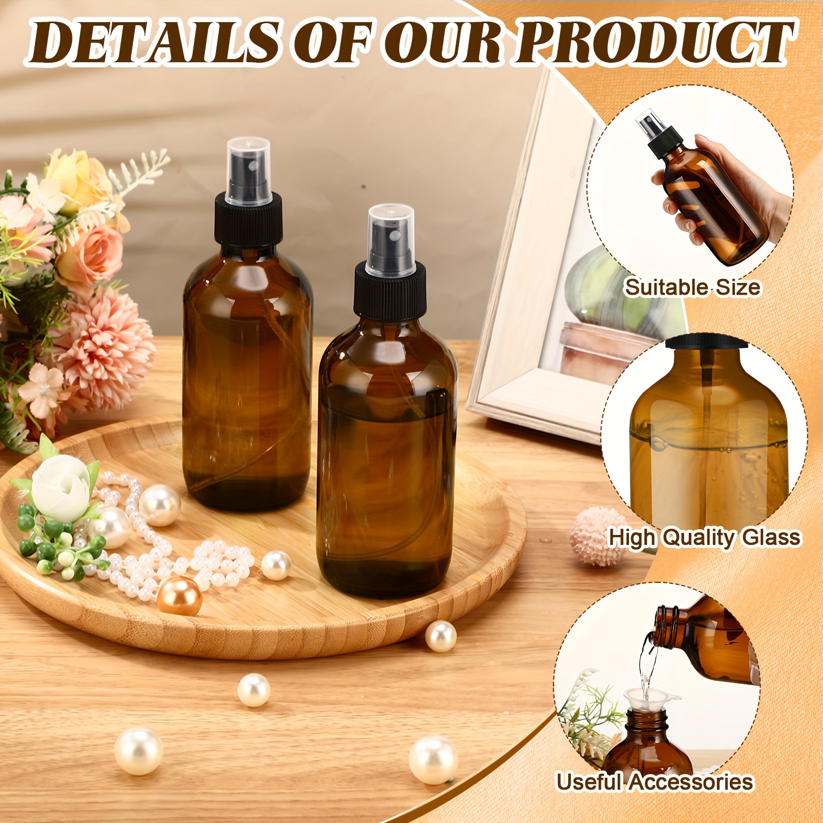 12pcs 8oz Glass Spray Bottles with Funnels And Labels Refillable Cosmetic Empty Spray Bottles with Sprayer Containers for Essential Oil Cleaning Solutions(Amber, Stylish)