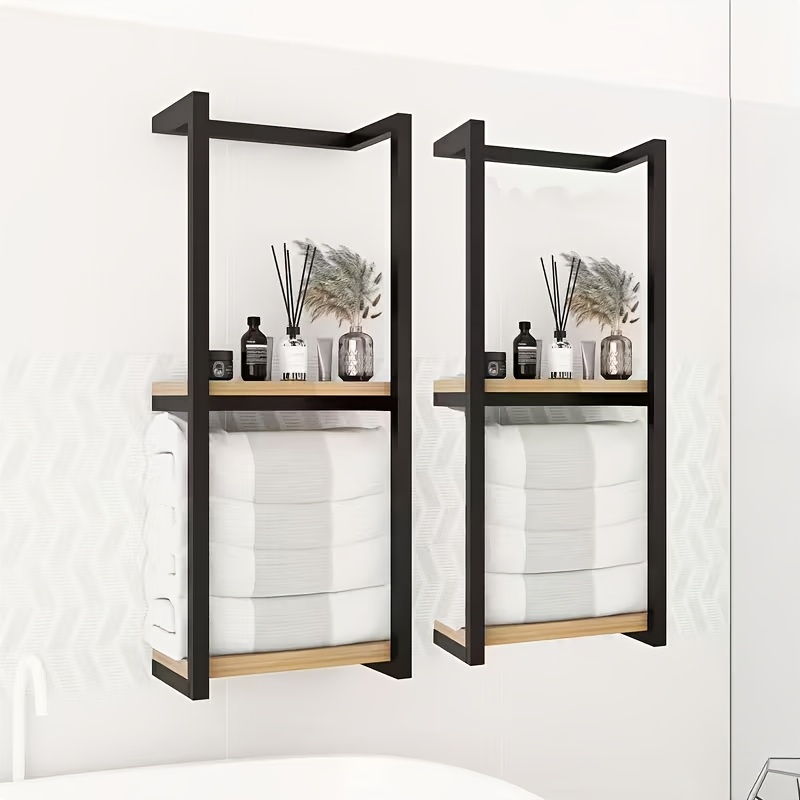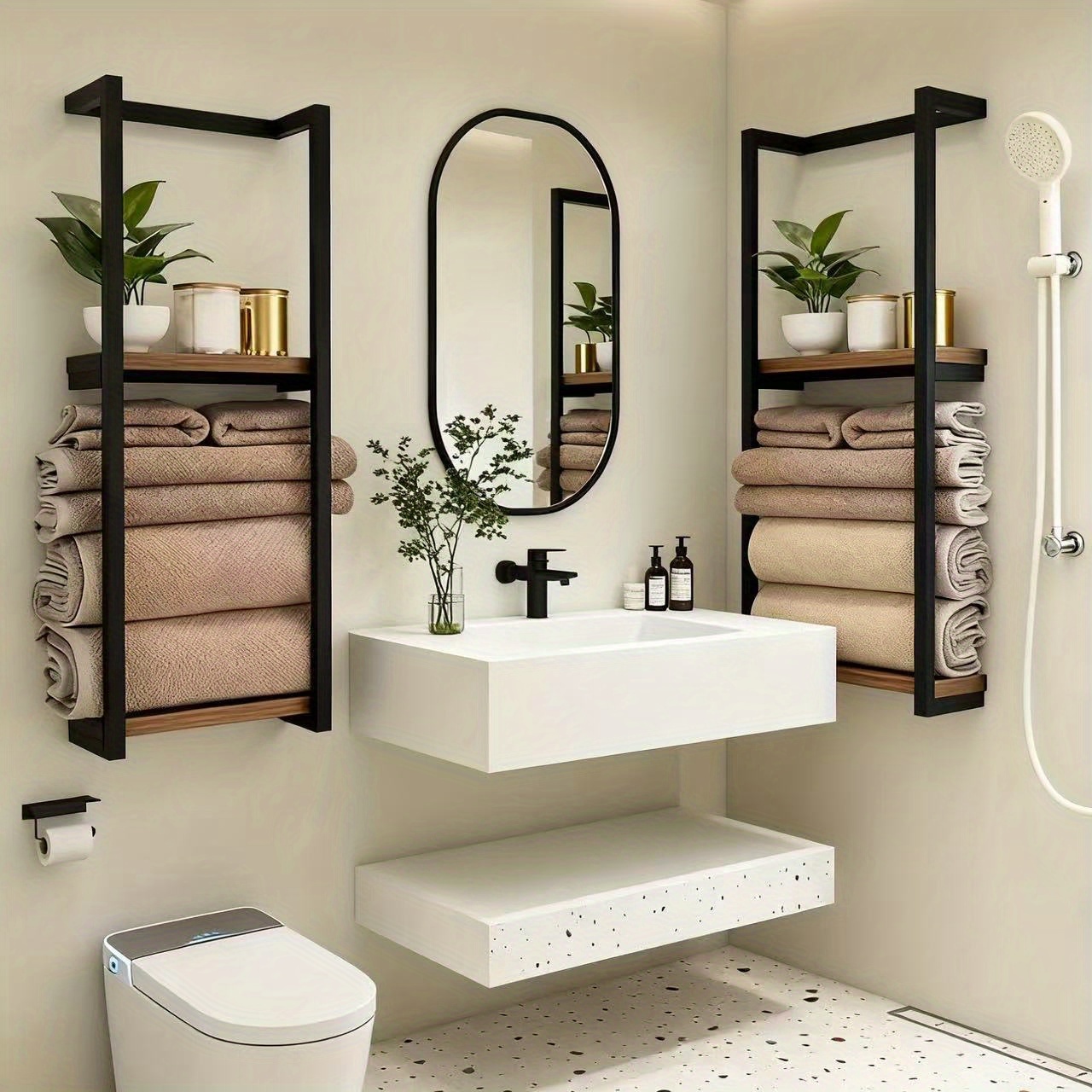 1pc/ 2pcs, Towel Rack, Bathroom Storage Rack, Art Deco Style, Bathroom Organizing Supplies, Storage Rack, Metal Bracket, Fixed Installation Method, More Sturdy And Durable!