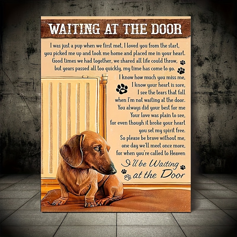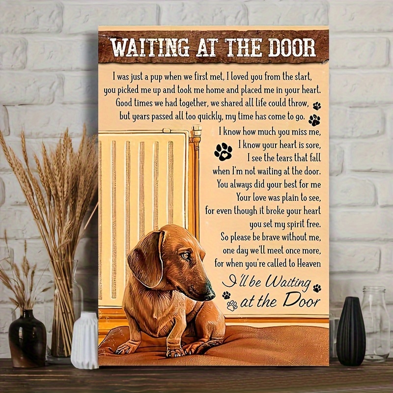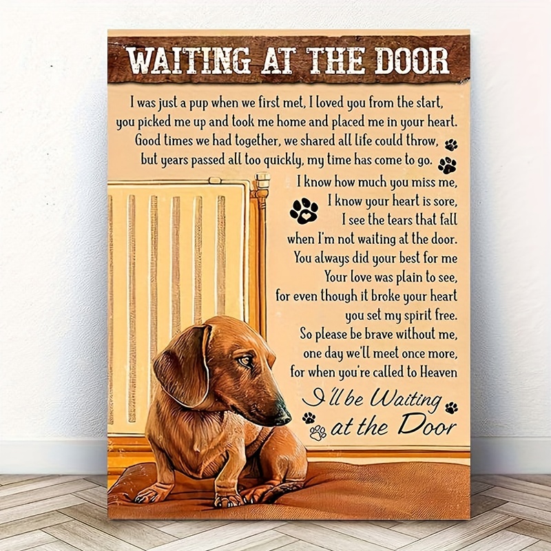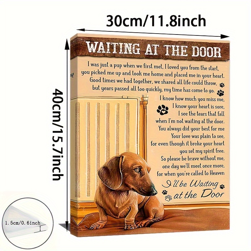 1pc Wooden Framed Canvas Painting Dachshund Dog Art Prints Wall For Bedroom Living Room Home Decor Waiting At The Door I Was Just A Cup Print Poster Picture With Framed Ready To Hang Gift For Her/Him