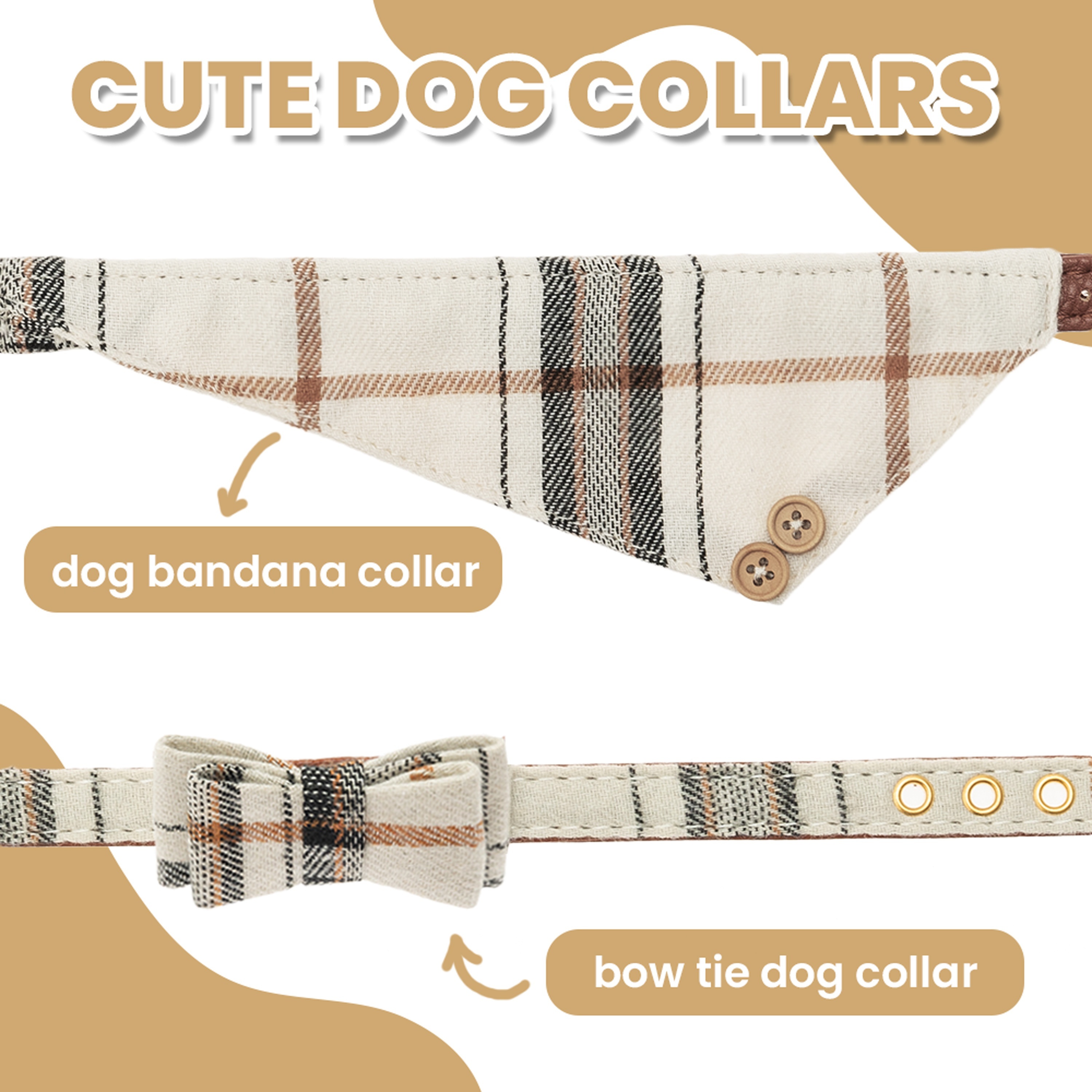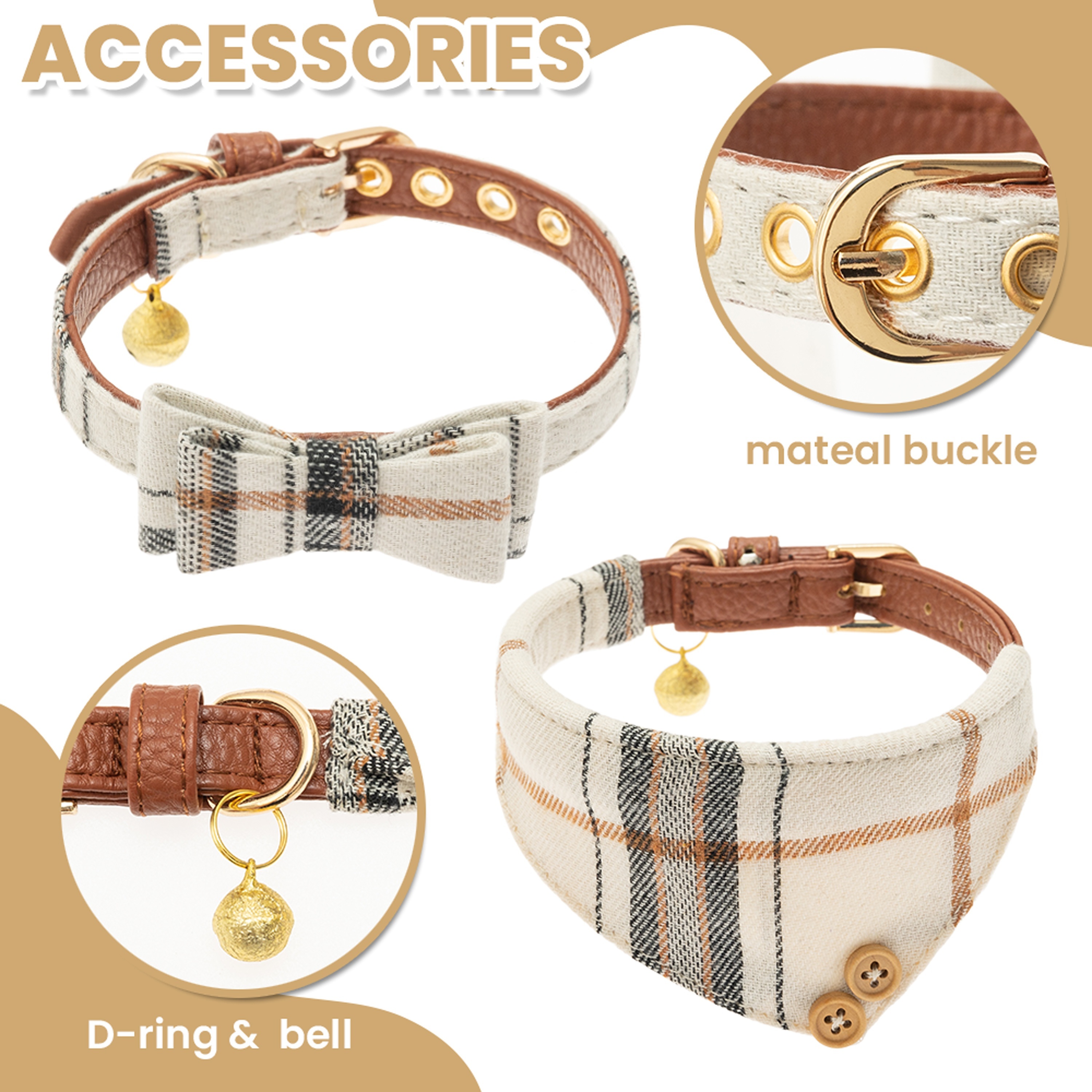 3pcs Leather Small Dog Collar And Leash Set, Plaid Bow Tie & Bandana Cute Dog Collar with Bell – Adjustable Pet Collars with Walking Leash for Small Dog Puppy Cat