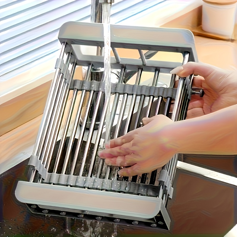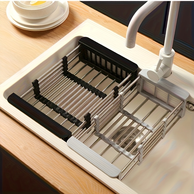 Adjustable Stainless Steel Expandable Dish Rack - Heavy-Duty No-Drill Sink Organizer, Space-Saving Draining Rack with Striped Design, Suitable for Utensils And Cookware, Fits Sinks And Countertops, Utility Racks