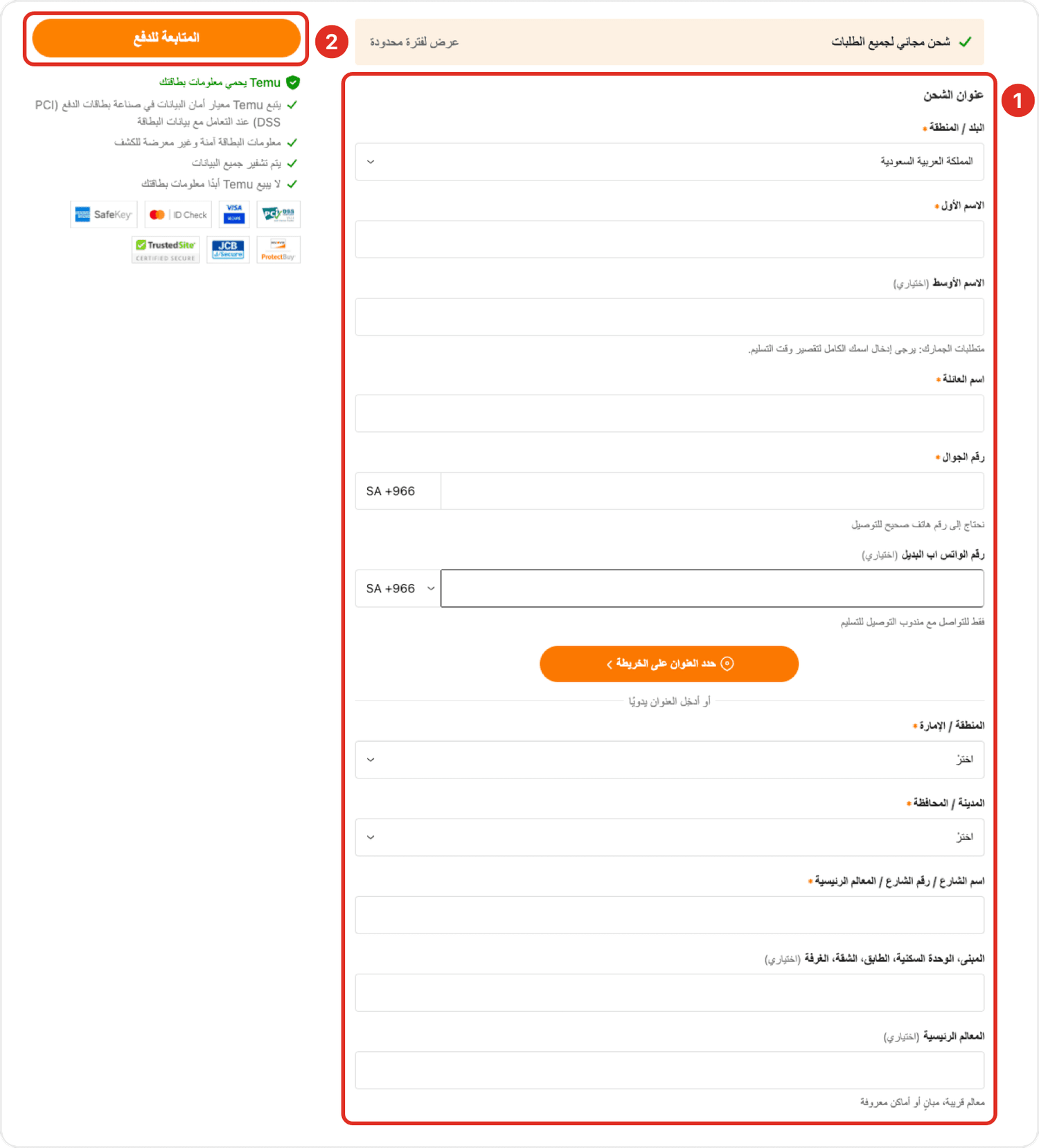 1. املأ حقل عنوان الشحن.