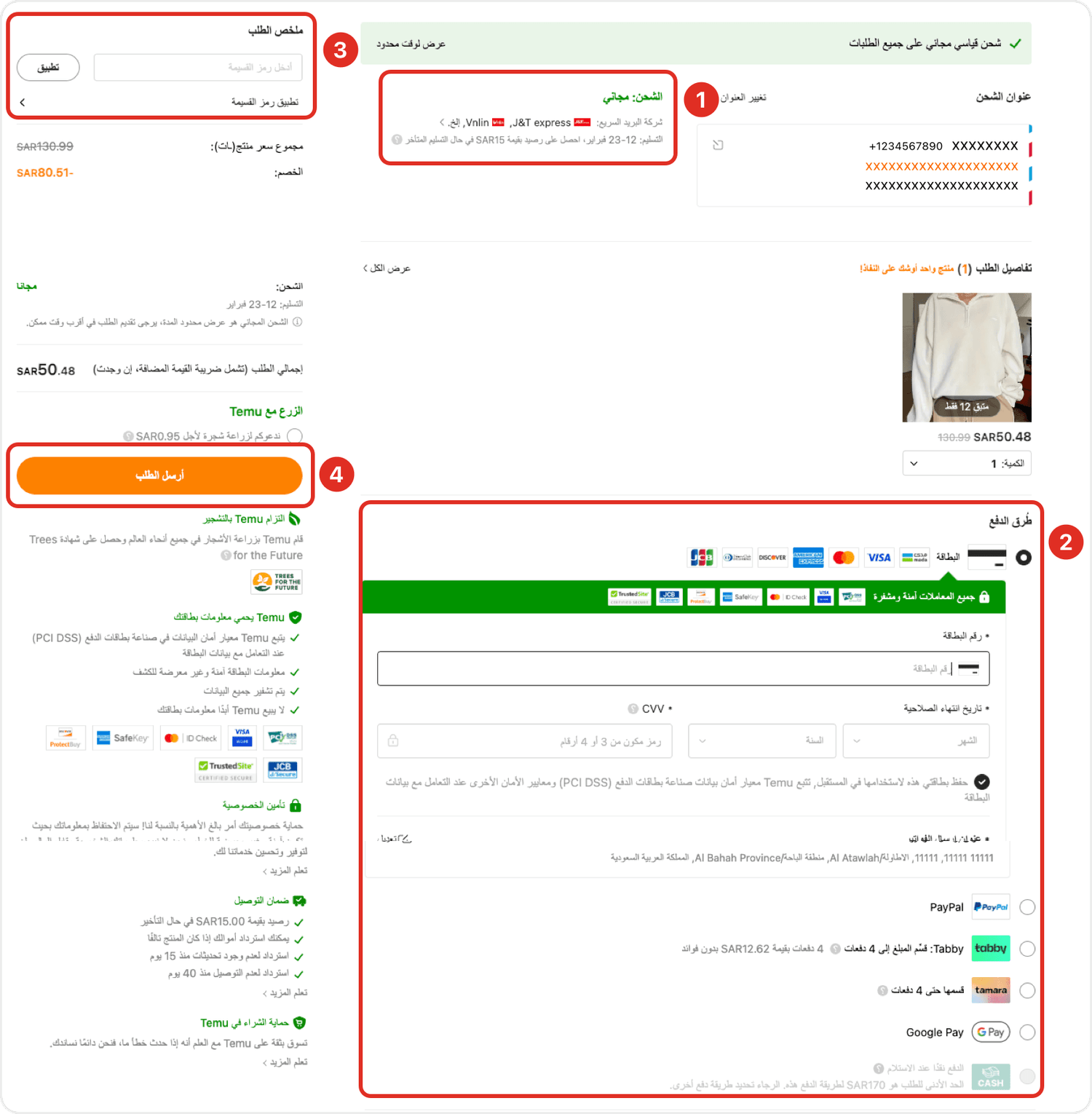 املأ حقول معلومات الشحن.