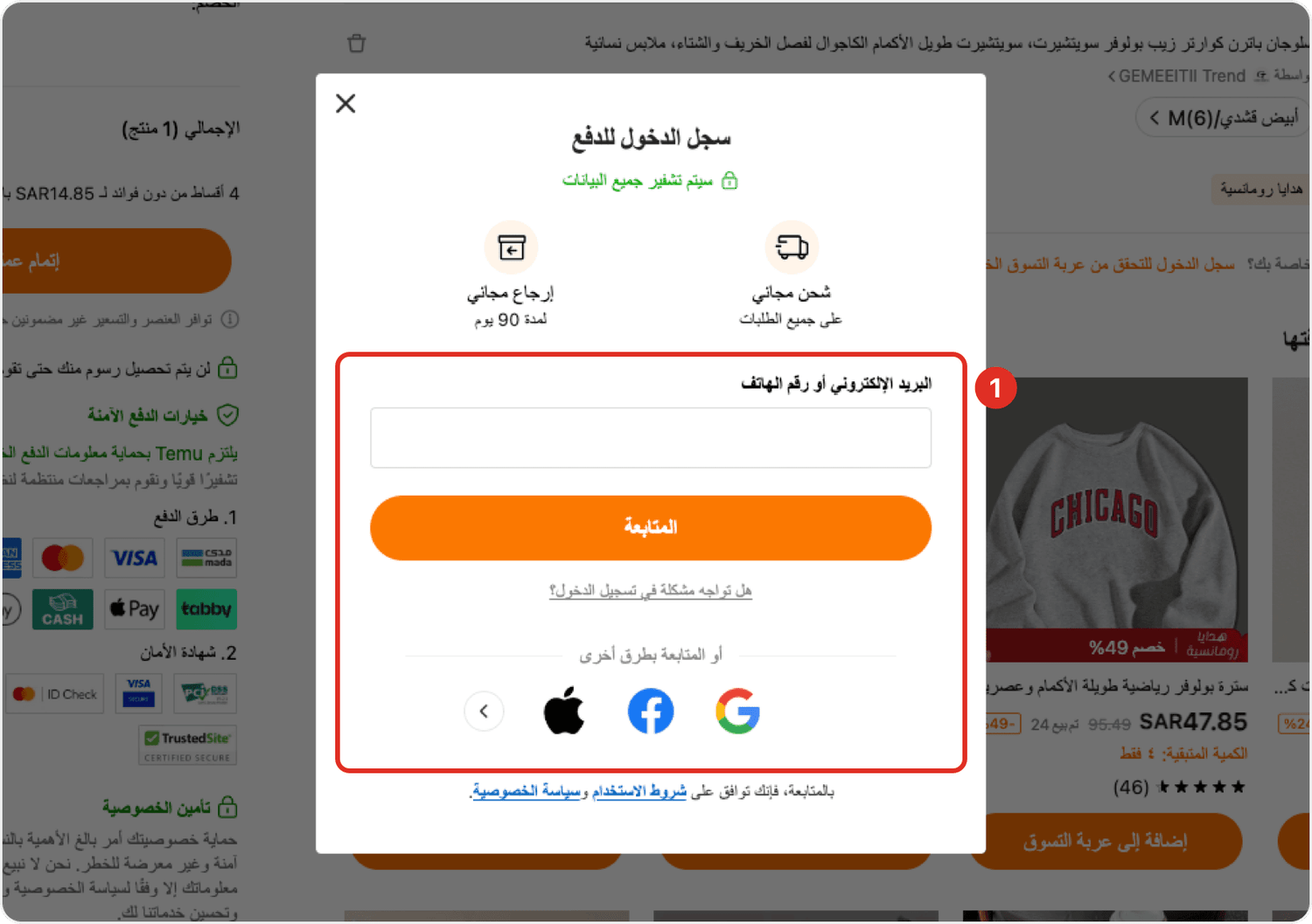 سجِّل الدخول إلى حساب Temu.