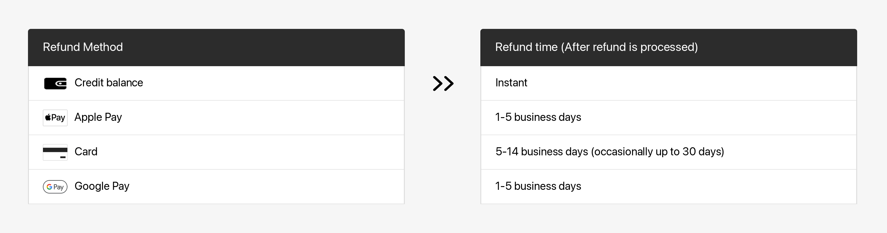 Once the refund is processed, your financial institution will need additional time to have it reflected in your account. Refer to the following table for more details.