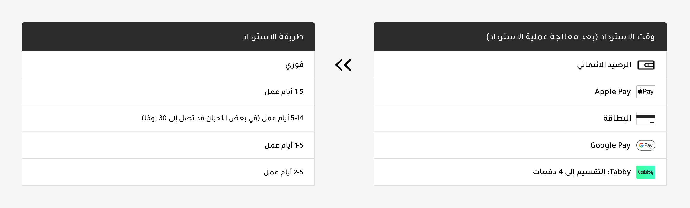 بمجرد معالجة عملية الاسترداد، ستحتاج مؤسستك المالية إلى وقت إضافي لإدخالها في حسابك. راجع الجدول الآتي لمزيد من التفاصيل.