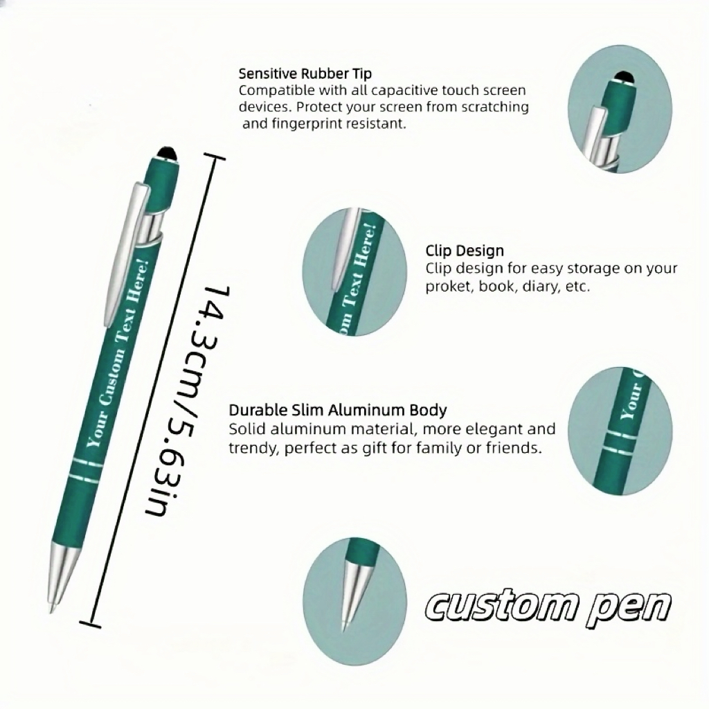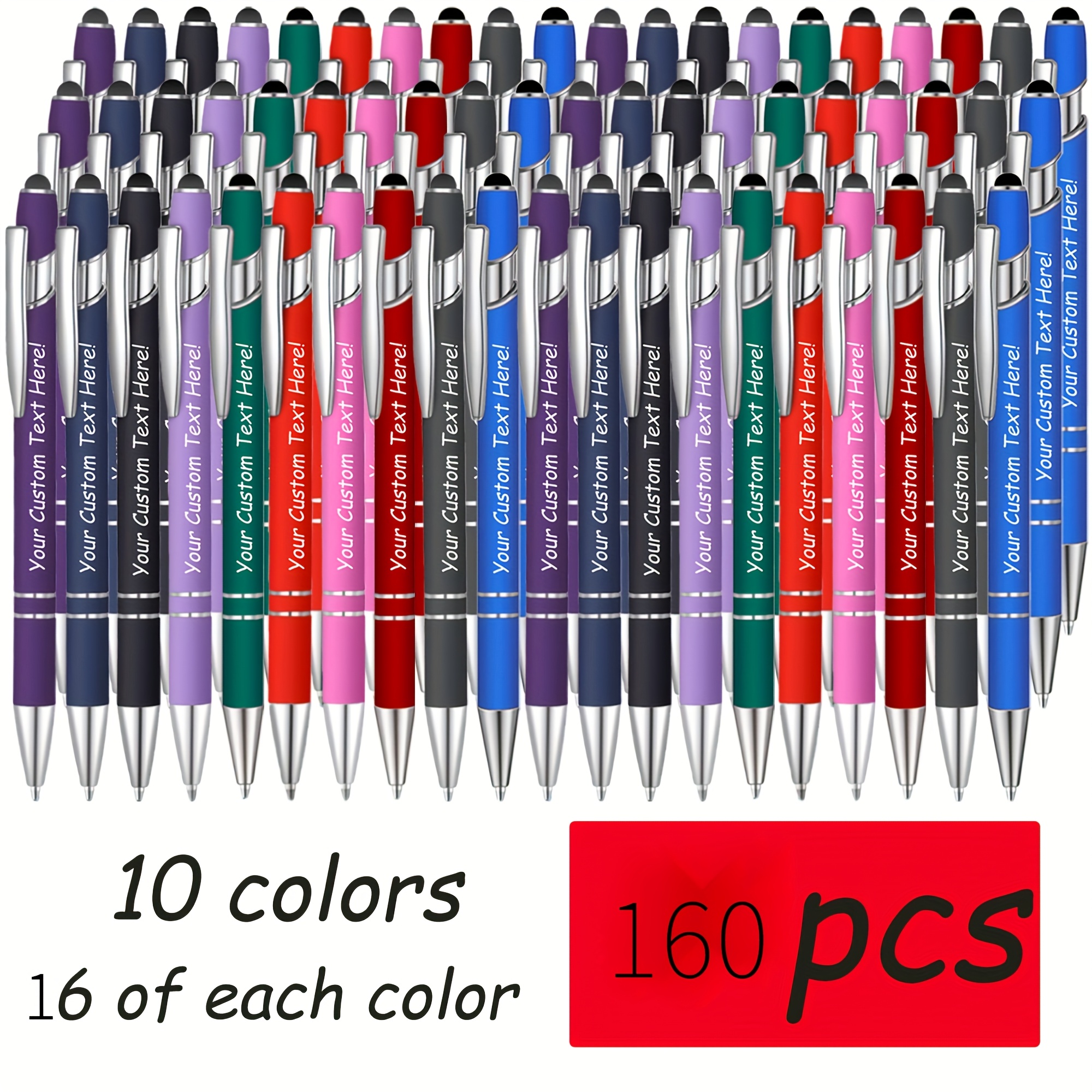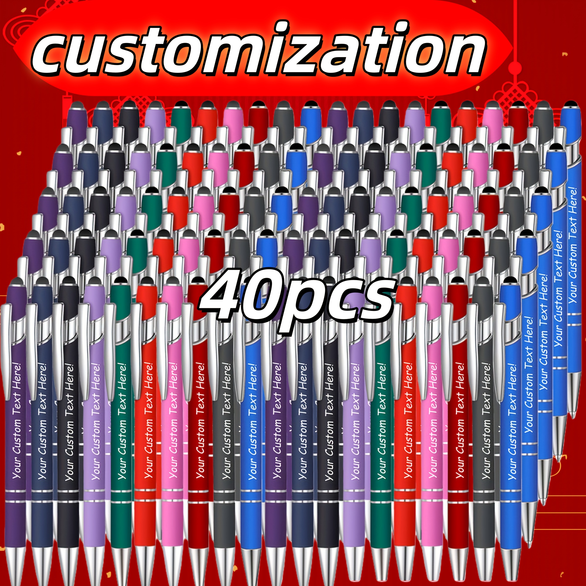 40/160/200 bucăți Set Pixuri Personalizate Gravate - Text Personalizat, Scriere Ușoară, Compatibil cu Ecran Tactil, Pix Metalic Negru, Cadou Ideal pentru Birou, Afaceri, Aniversări Școlare - Instrument de Scris Fin