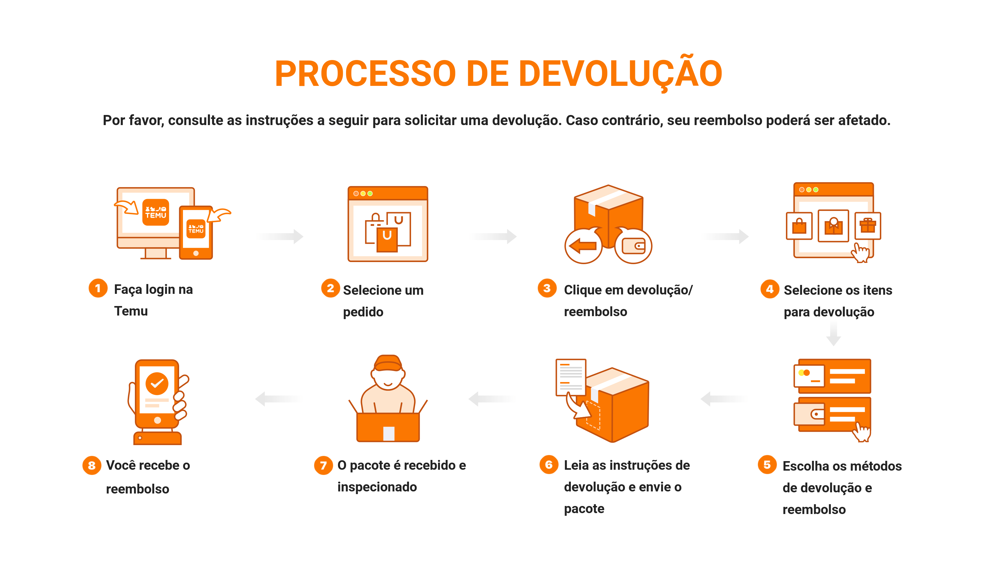Se não estiver satisfeito com o que comprou na Temu, poderá ser elegível para devolver o item e obter um reembolso, seguindo o procedimento simples estipulado nesta Política de Devolução e Reembolso.