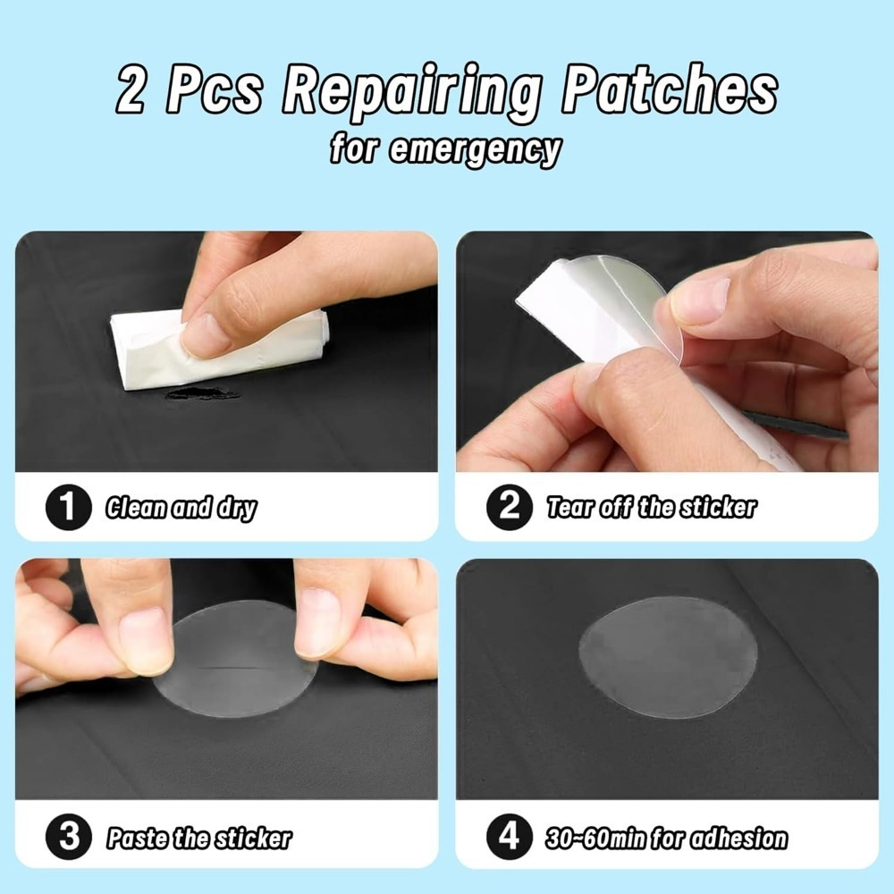 Light and compact, it weighs around 0.16 pounds and measures 40 by 30 centimeters. It can be quickly deflated and folded into a small size, making travel more convenient without sacrificing comfort. It can support up to 330 pounds. The inside features an electric welding design that creates several air support grids with multiple points to evenly distribute weight.