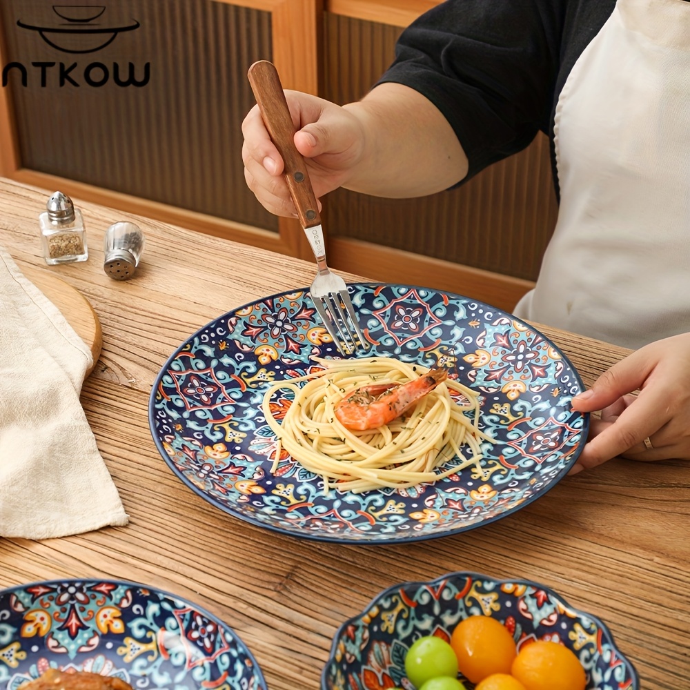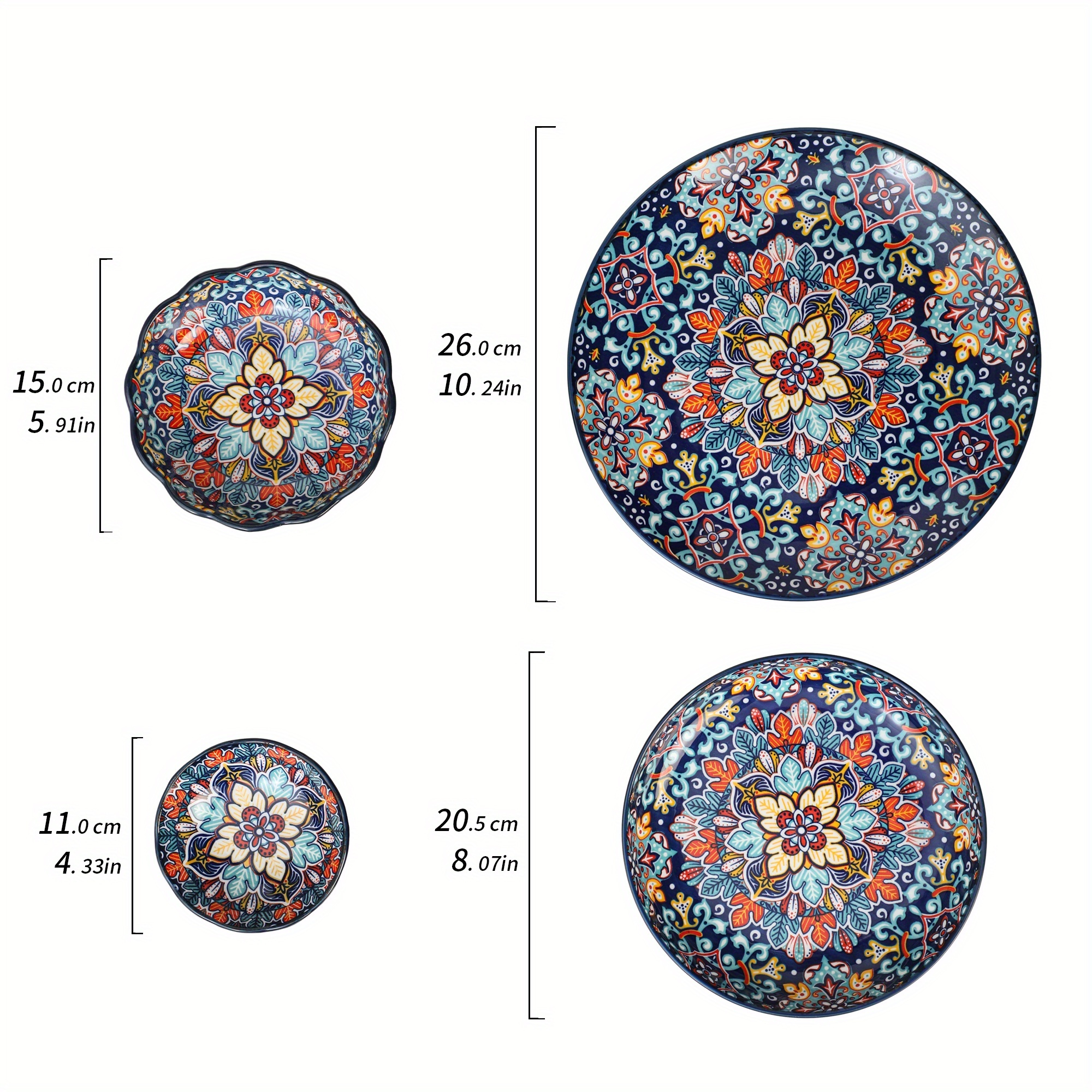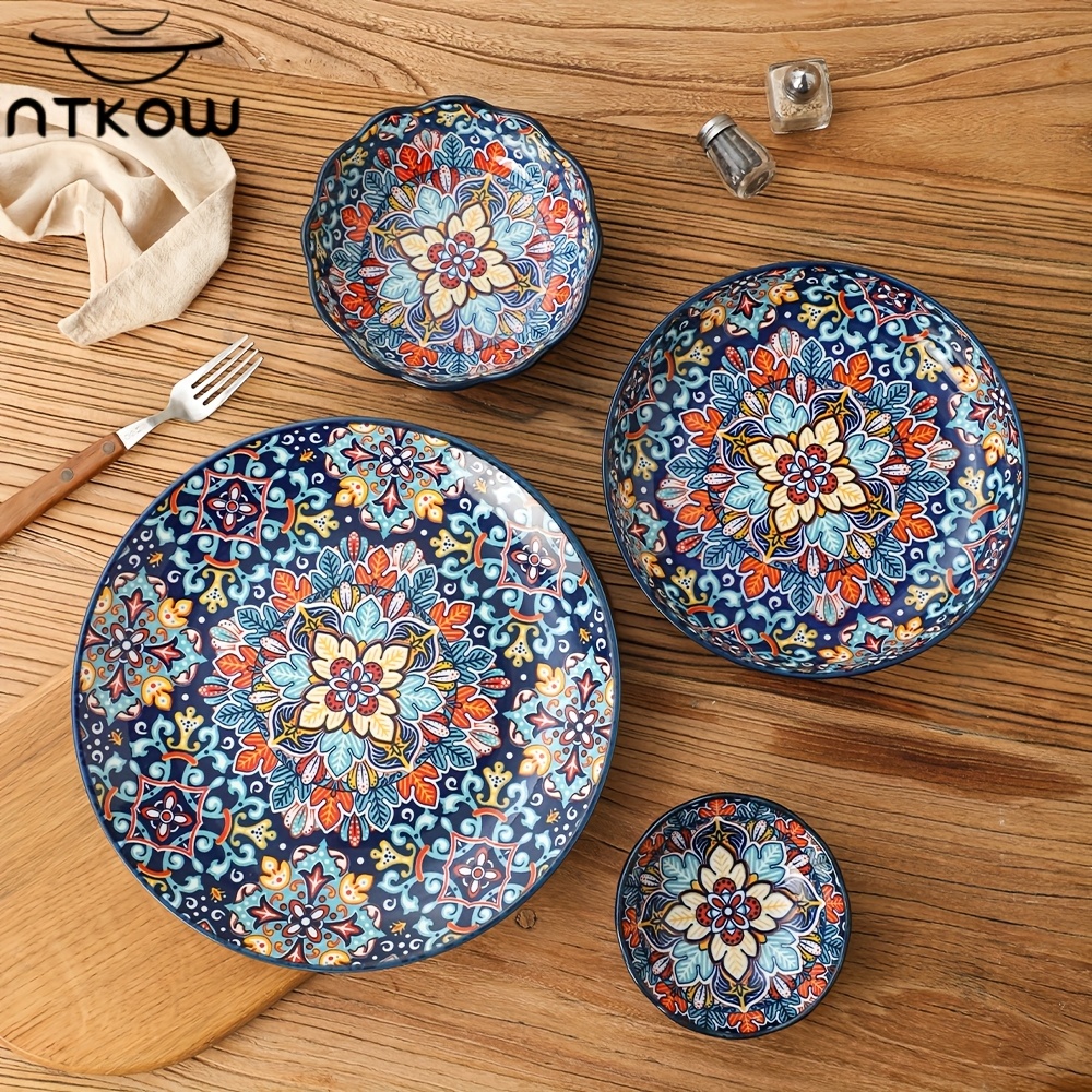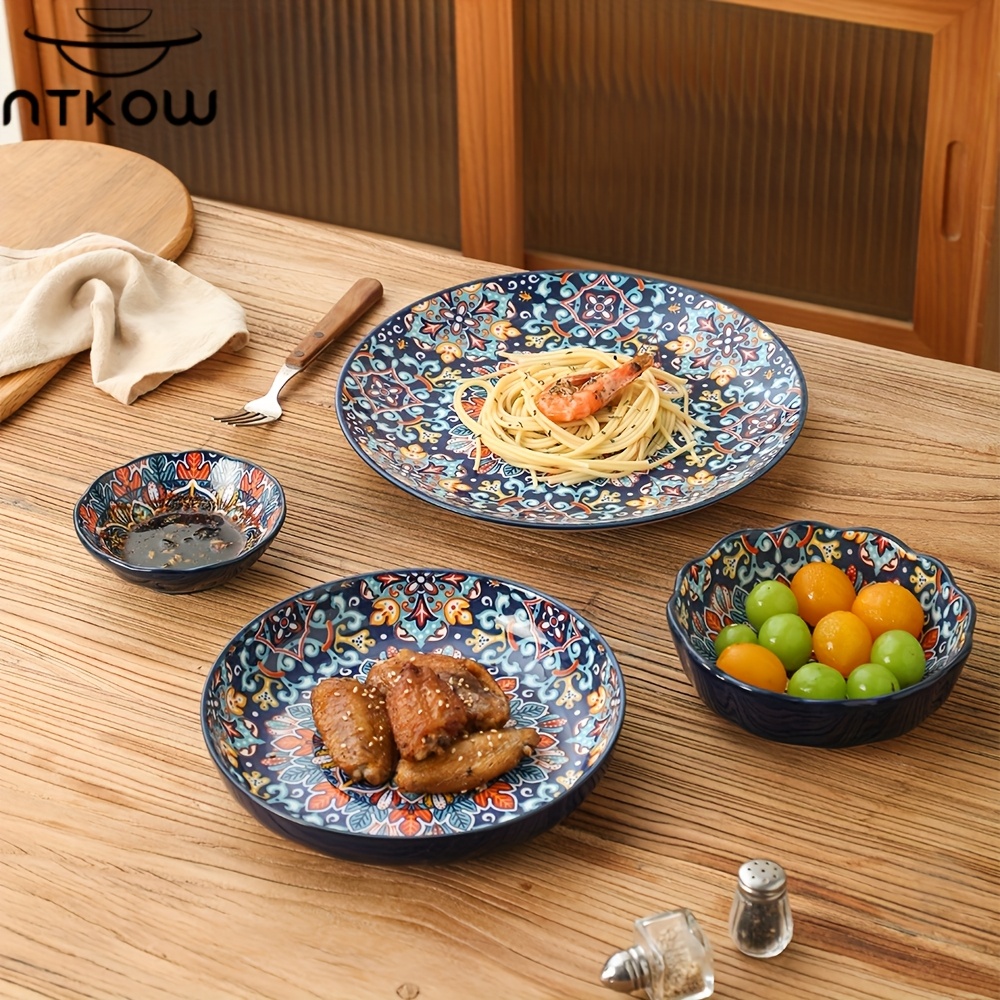 NTKOW 4pcs Bohemian dinnerware set, full sizes from 4 to 11 inches, versatile as salad plates, fruit dishes, sauce bowls. Microwave-safe, fits various scenarios. A top tableware pick, both attractive and practical, ideal for gifting or personal use