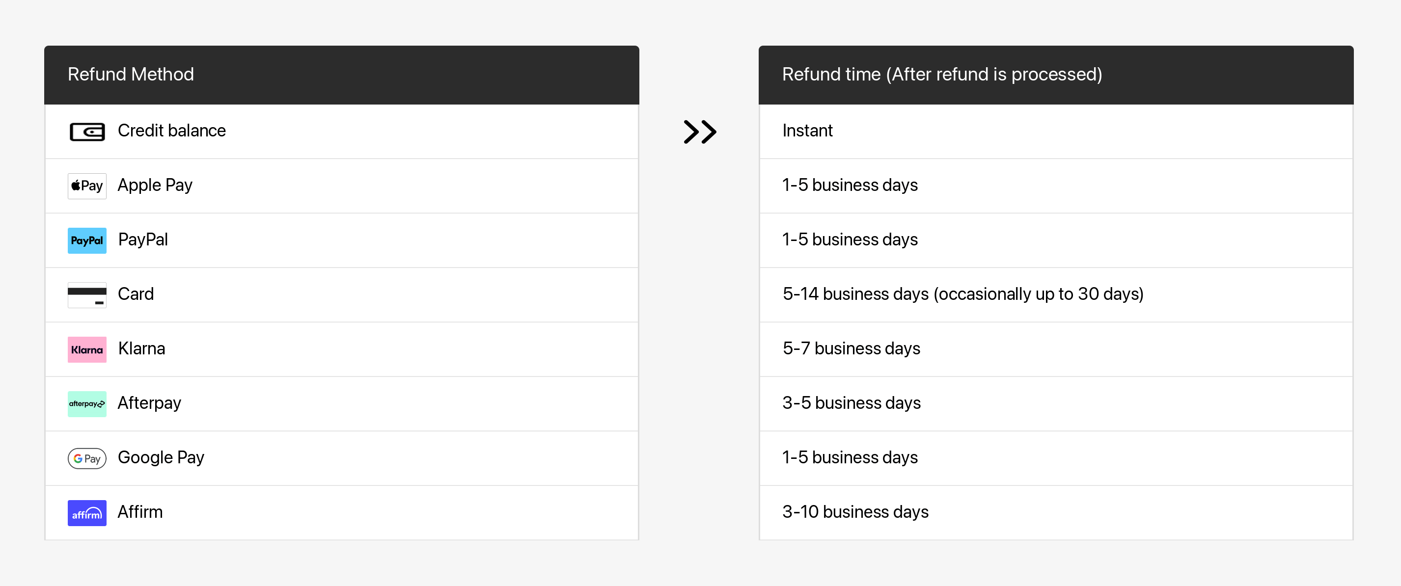 Once the refund is processed, your financial institution will need additional time to have it reflected in your account. Refer to the following table for more details.