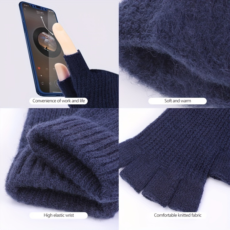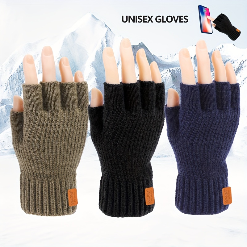Warm Gloves with a Solid Color, Featuring Short Half Fingers, Perfect for Writing And Texting During The Cold Winter Months