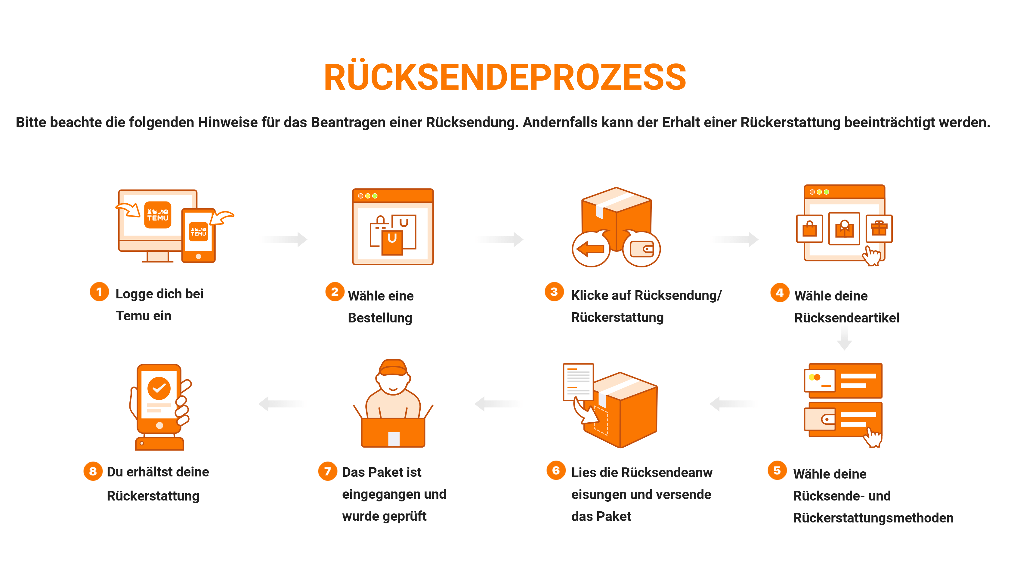 Falls du mit dem, was du auf Temu gekauft hast, nicht zufrieden bist, kannst du es zurückgeben und die Rückerstattung erhalten, indem du die einfache Vorgehensweise befolgst. Dieses ist in der Rückgabe- und Rückerstattungsrichtlinie beschrieben .
