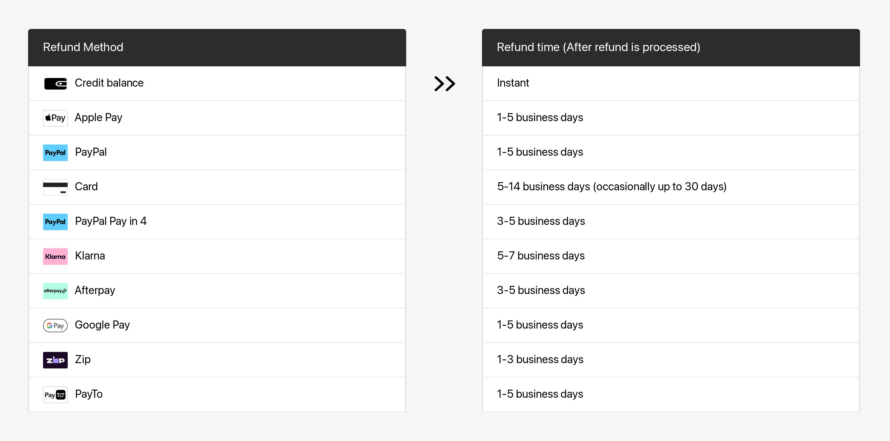 Once the refund is processed, your financial institution will need additional time to have it reflected in your account. Refer to the following table for more details.