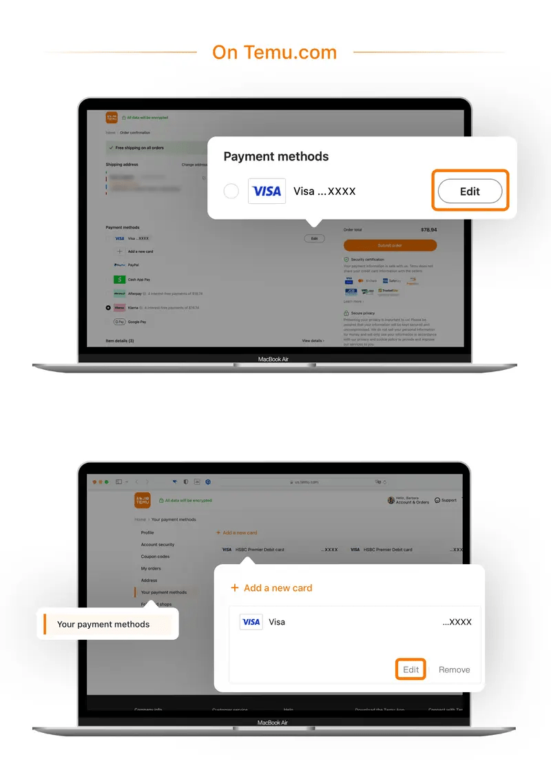 Jos haluat lisätä uuden luotto-/pankkikortin tilillesi, poistaa kortin tai muokata korttitietojasi, napsauta tästä päästäksesi maksutapojen sivulle, jossa voit hallita korttejasi.
