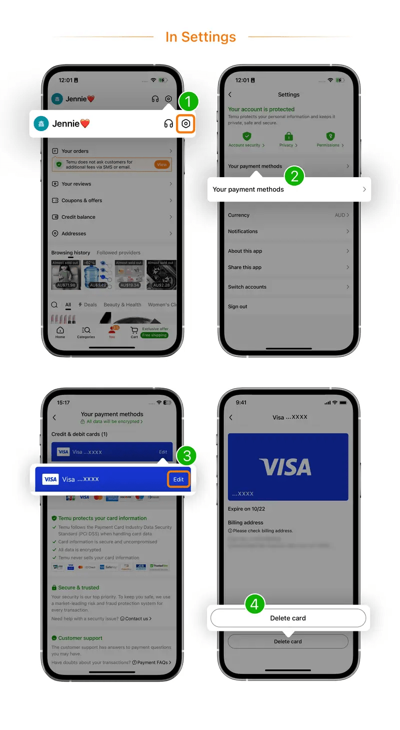 Kuidas lisada/eemaldada/muuta krediit-/deebetkaarti või Visa kinkekaarti?