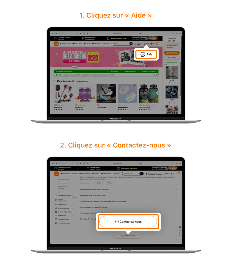 Si vous êtes sur Temu.com, suivez ces étapes pour contacter le service client de Temu :