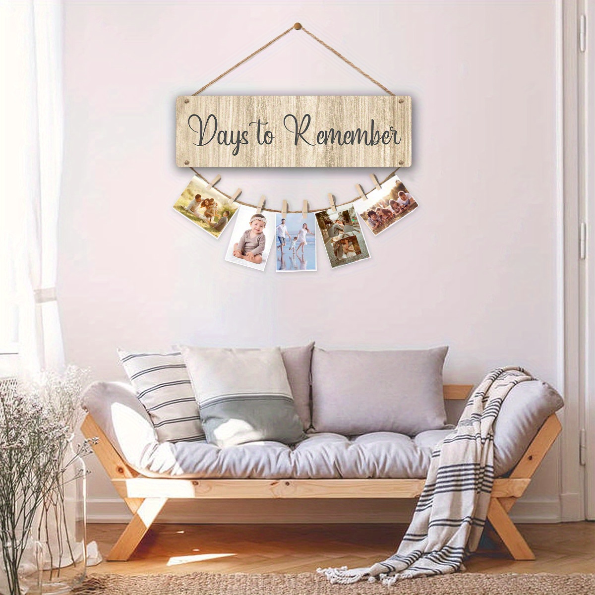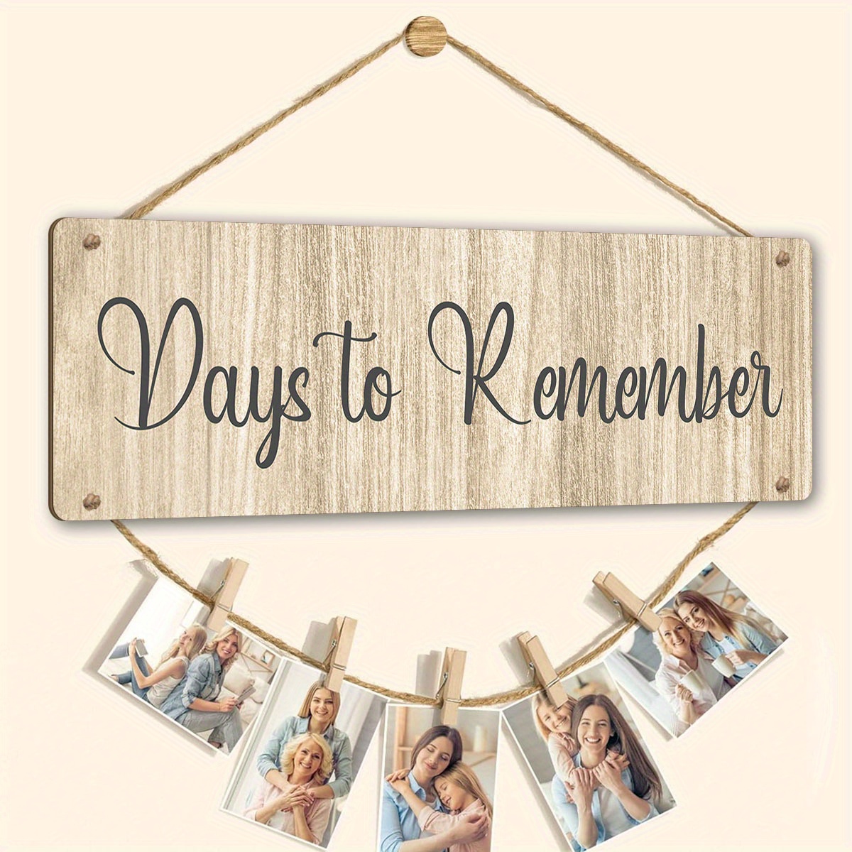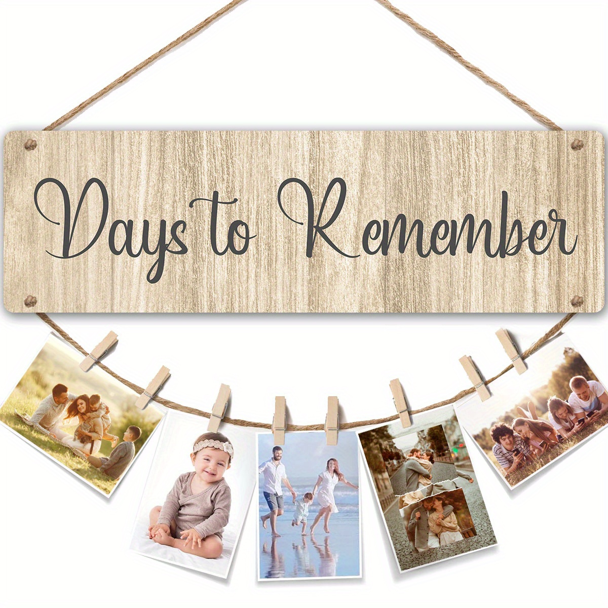 Family Photo Frame Collage Photo Hanging Display, Unforgettable Days Wooden Photo Frame Hanging Tag with 8 Clips, Suitable for Living Room Wall Office Bedroom Decoration, Family Party Gift