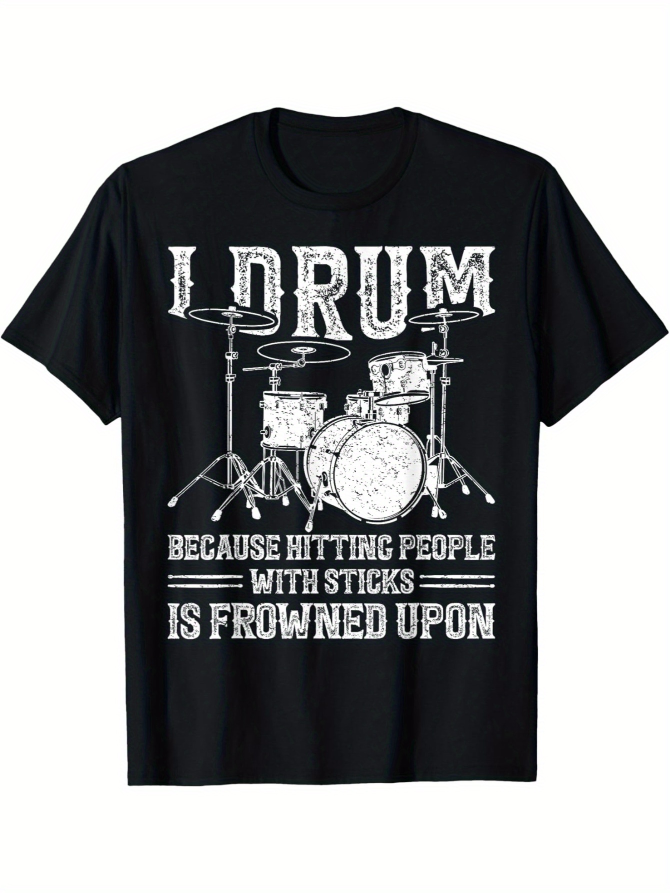 Funny Drumming Black T-Shirt for Men – 'I Drum Because Hitting People with Sticks Is Frowned Upon' Graphic Tee, Perfect for Musicians and Percussion Lovers