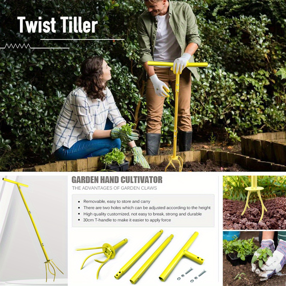 Manual Twist Tiller Garden Claw, Gardening Hand Tiller with Detachable Large Claws, Steel Cultivator Tiller Lawn Aerator Soli Lossener for Garden Beds And Planters