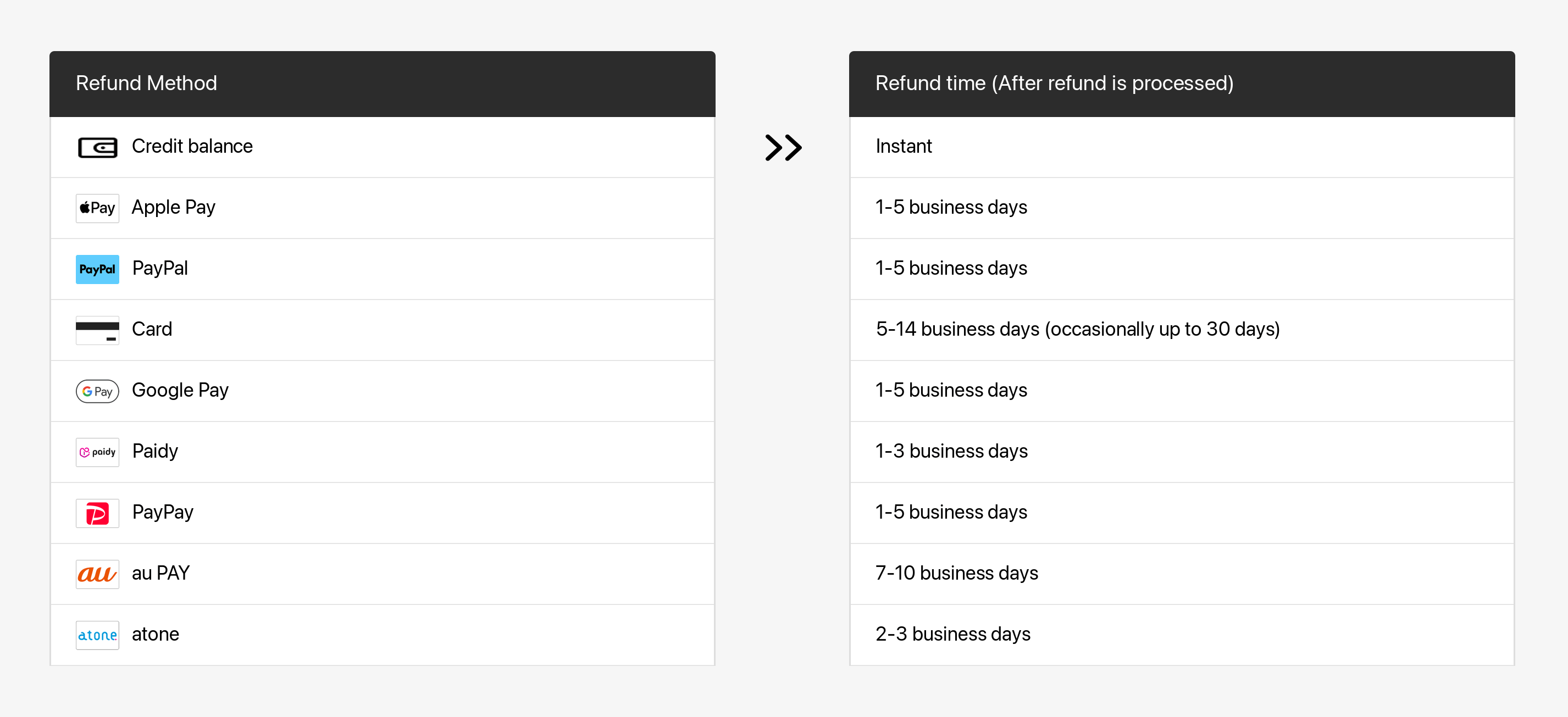 Once the refund is processed, your financial institution will need additional time to have it reflected in your account. Refer to the following table for more details.