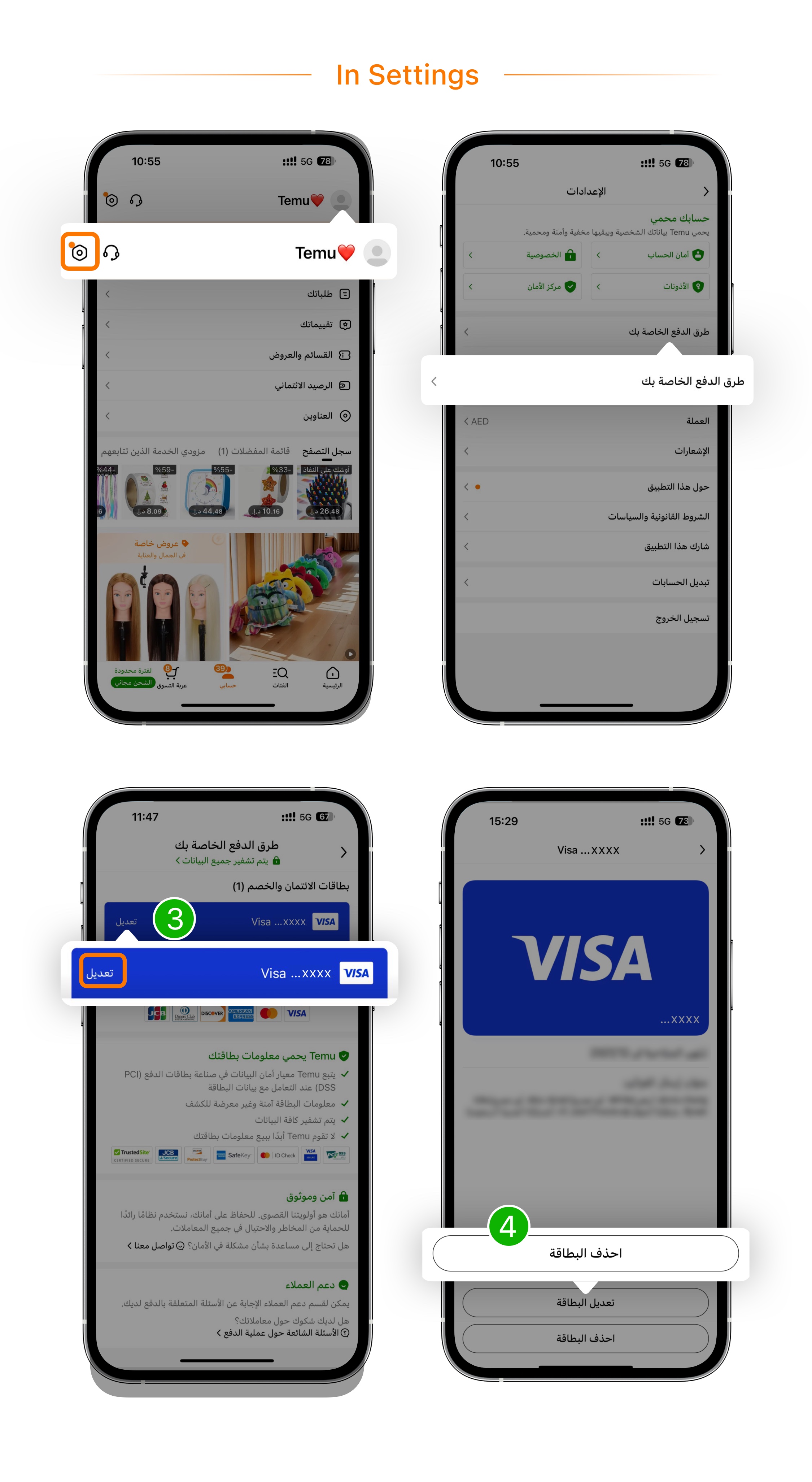 كيف يمكنني حذف بطاقة الائتمان/الخصم الخاصة بي؟
