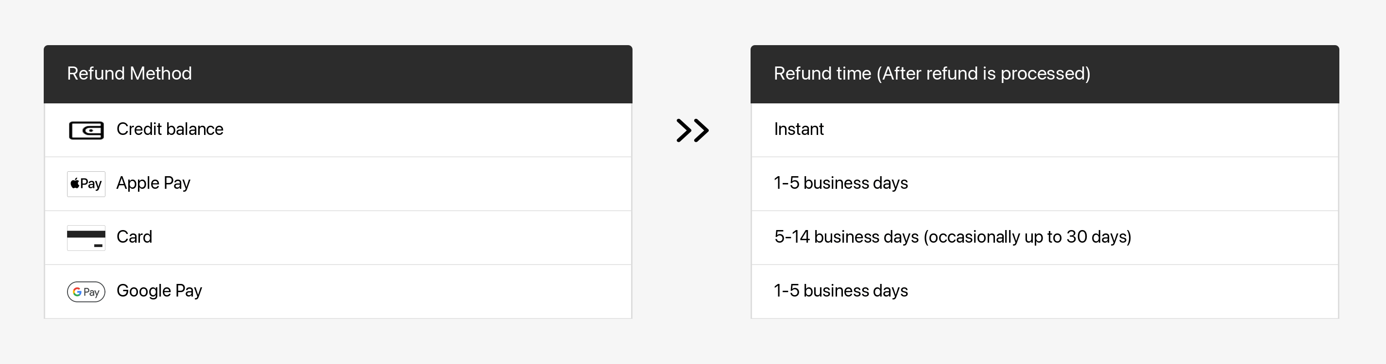 Once the refund is processed, your financial institution will need additional time to have it reflected in your account. Refer to the following table for more details.