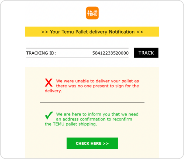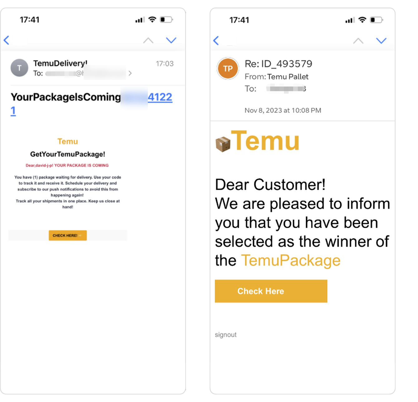 3. Je hebt een melding gekregen dat je iets hebt gewonnen en bent misleid tot het kopen van artikelen en het initiëren van betalingen/transacties voor een nepwebsite/-app die vergelijkbaar is met Temu.