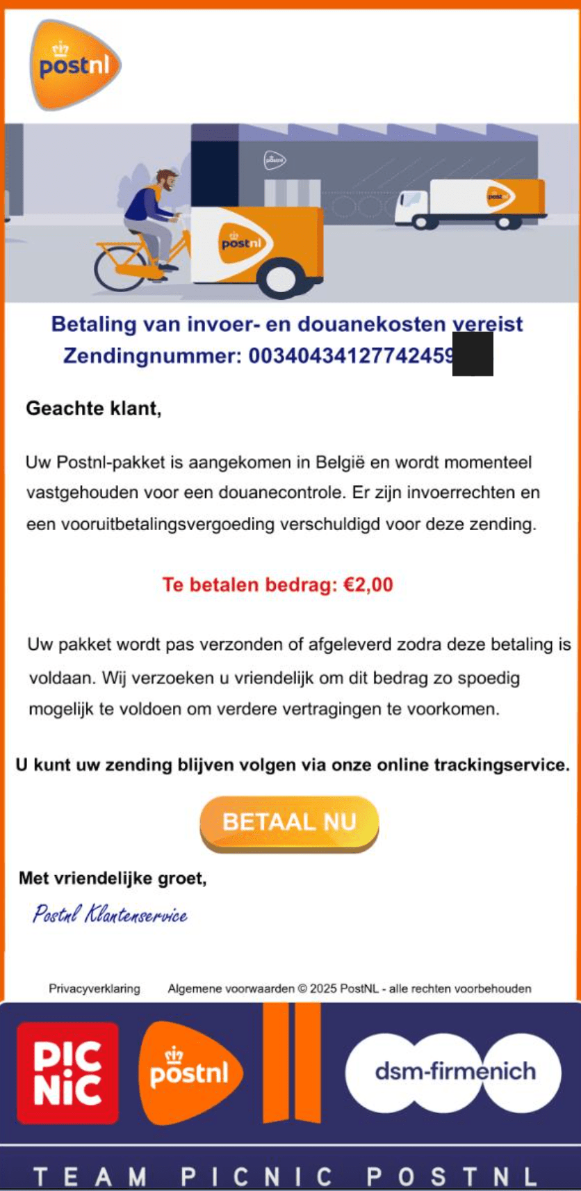 1. Je bent benaderd door een onbekende derde partij die beweerde een koerier te zijn en om extra verzendkosten vroeg.