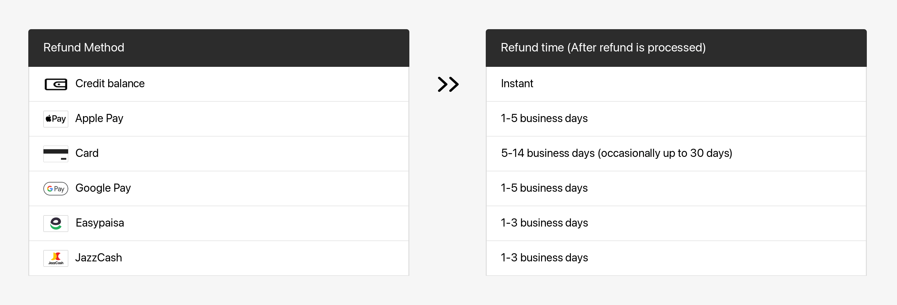 Once the refund is processed, your financial institution will need additional time to have it reflected in your account. Refer to the following table for more details.