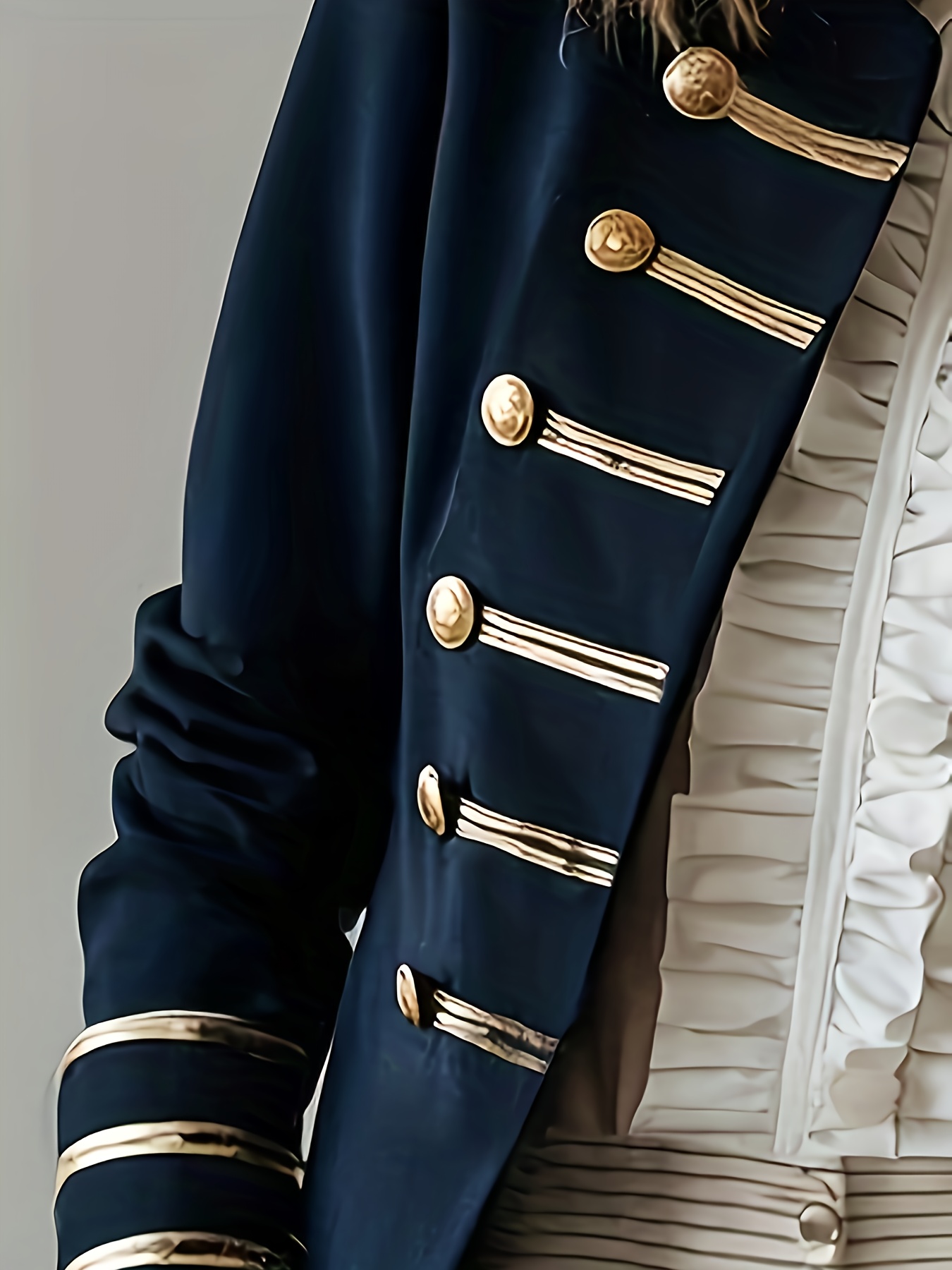 Navy-style Suit Jacket with Golden Stripe Buttons, Suitable for Daily Wear, Parties, and Valentine's Day. YTD Cherry
