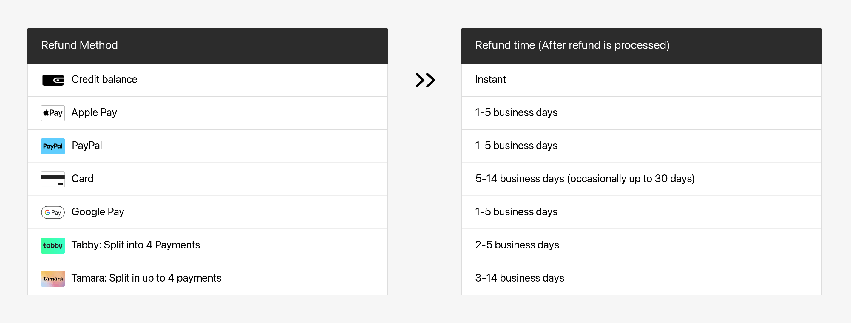 Once the refund is processed, your financial institution will need additional time to have it reflected in your account. Refer to the following table for more details.