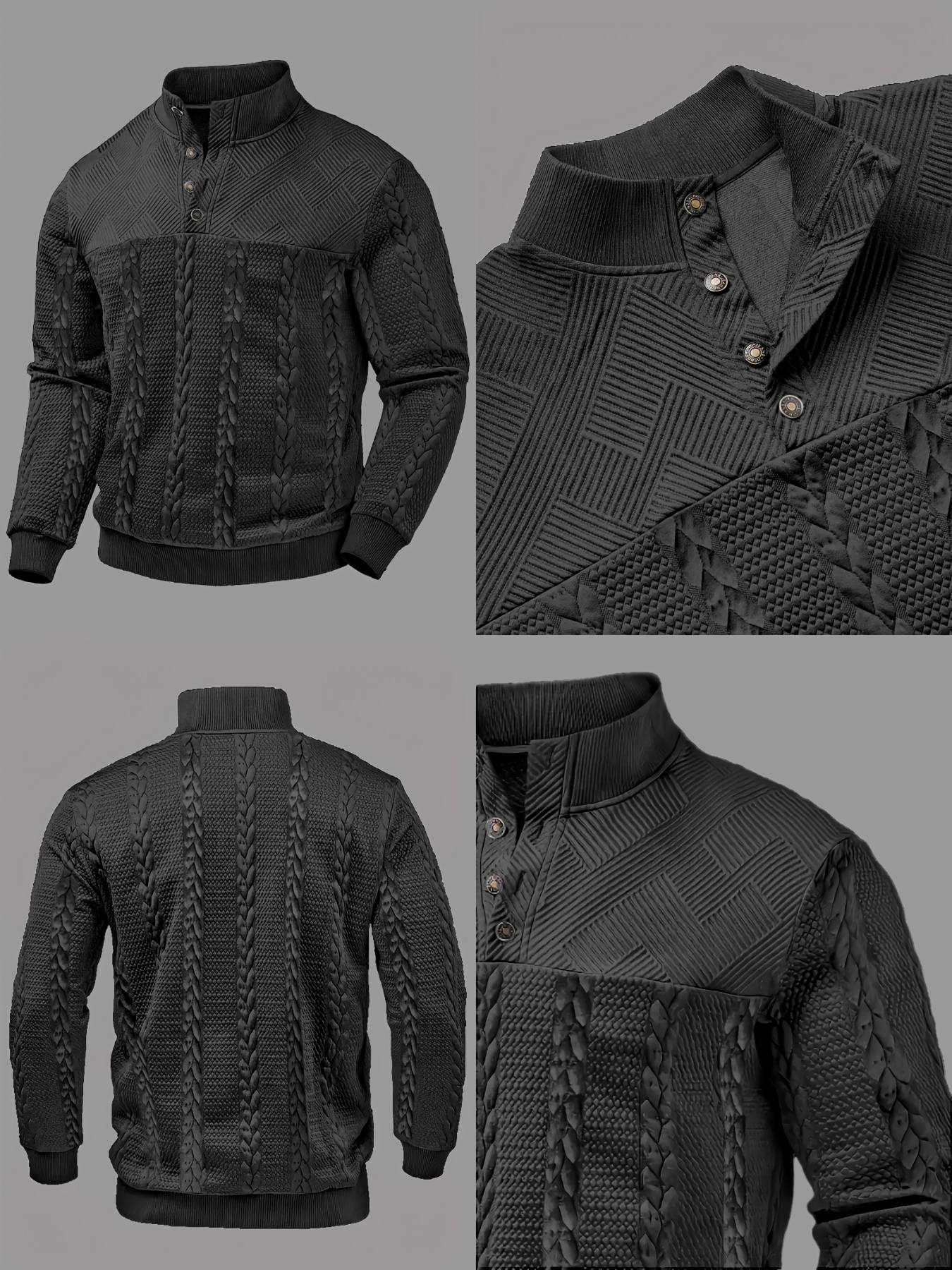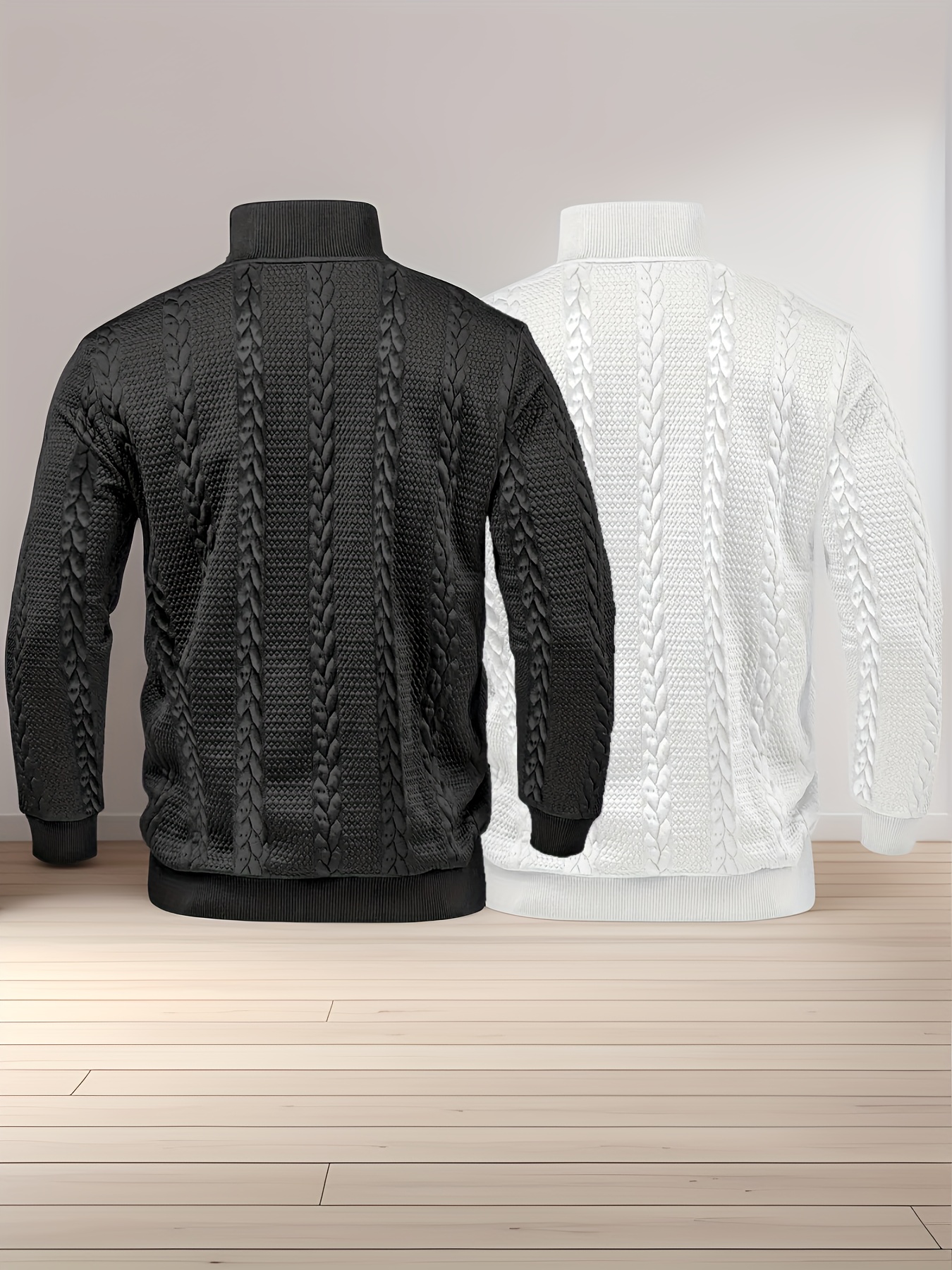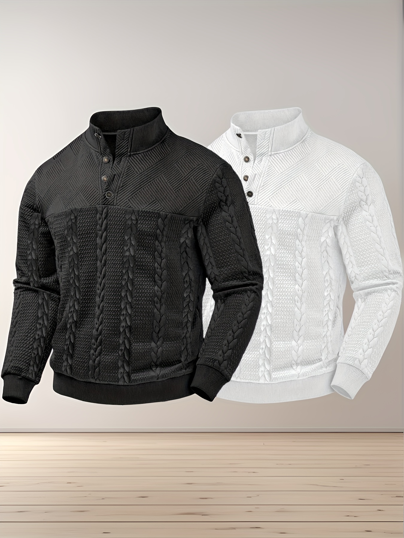 2pcs Men'S Heavyweight Button-Front Sweatshirts - Solid Color Crewneck Pullover Sweaters, Long Sleeve Casual & Formal Wear, Regular Fit for Everyday & Formal Events, Knit, Sweater For Men, Sweater For Men High Quality, Sweater For Men High Quality L