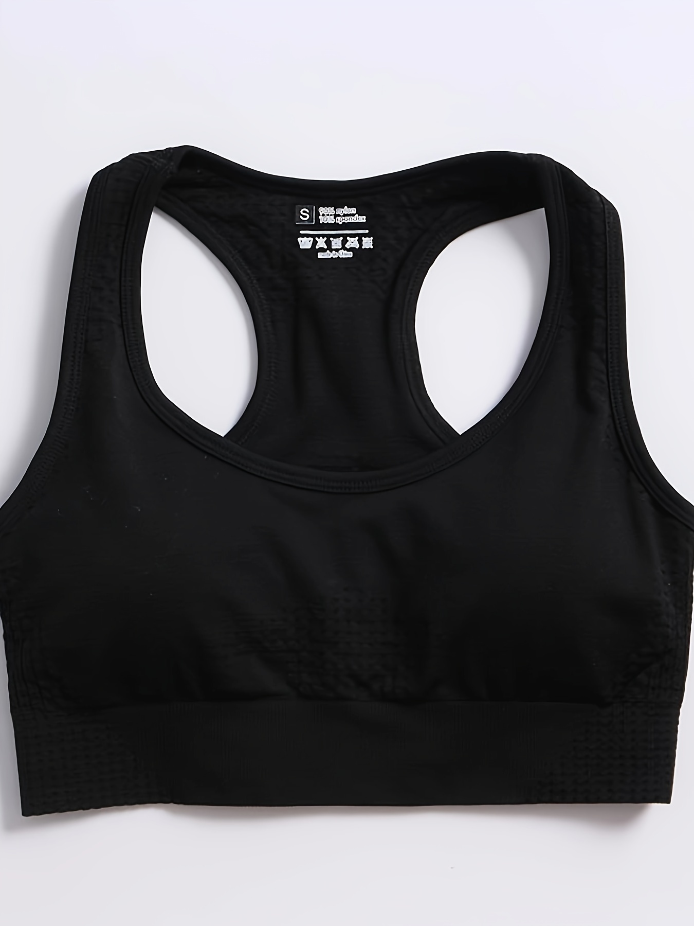 Solid U-neck Sleeveless Running Yoga Sports Bra, Racer Back High Stretch Fitness Sports Crop Top With Removable Chest Pad, Women's Activewear