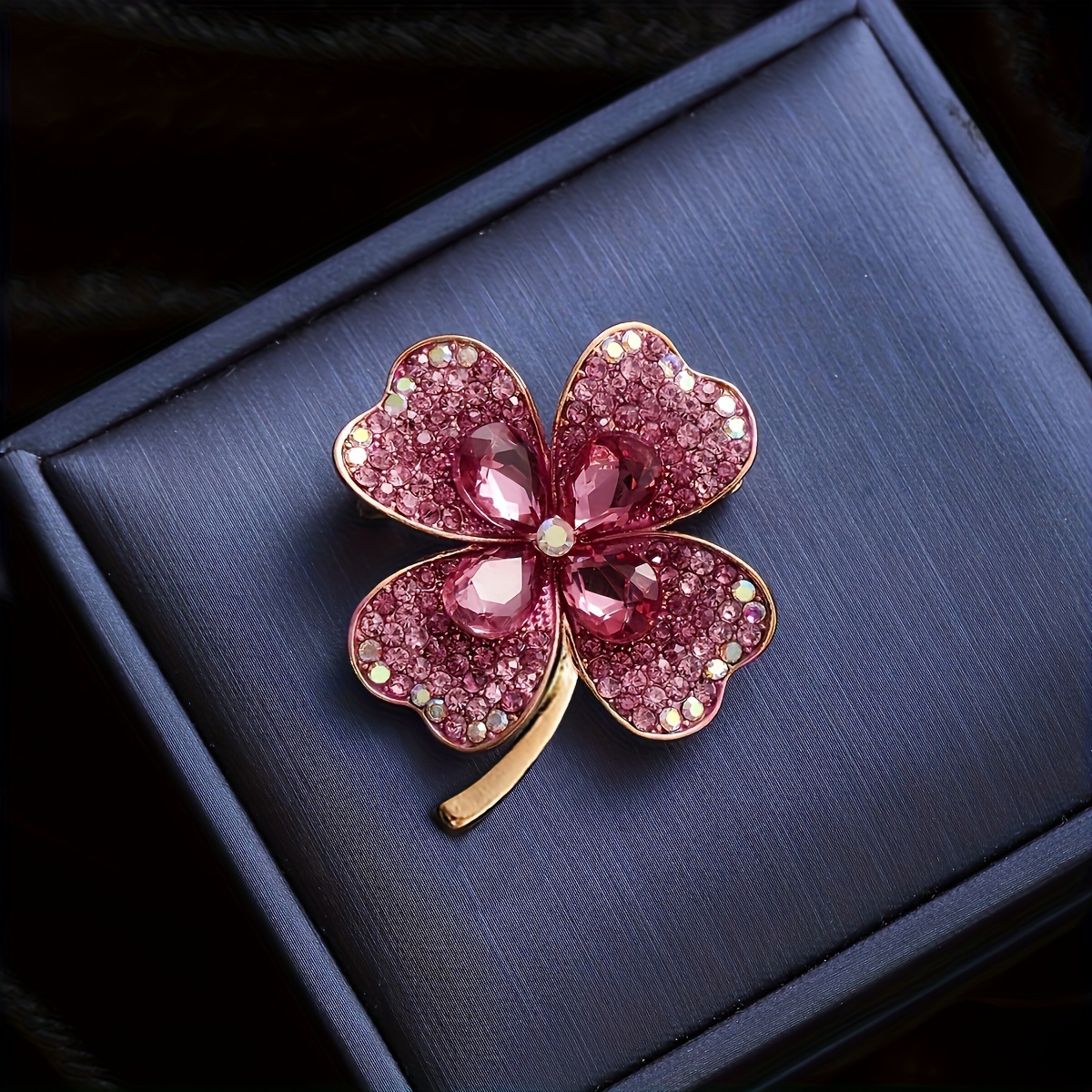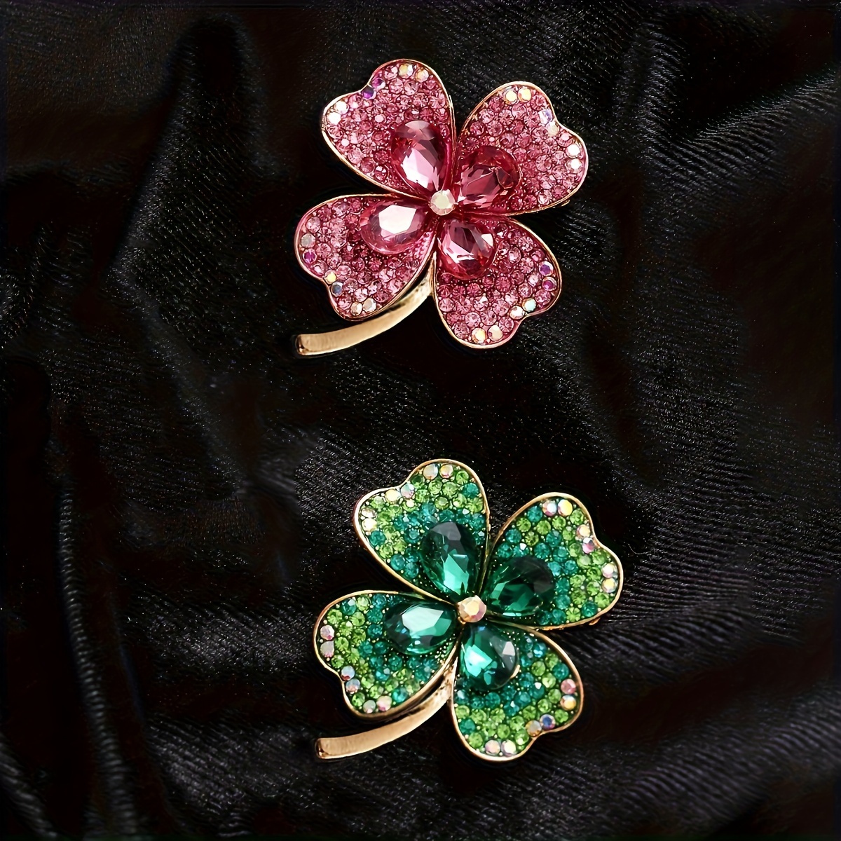Fashionable and Trendy Accessory, Luxurious Full-Rhinestone Rhinestone Clover Brooch