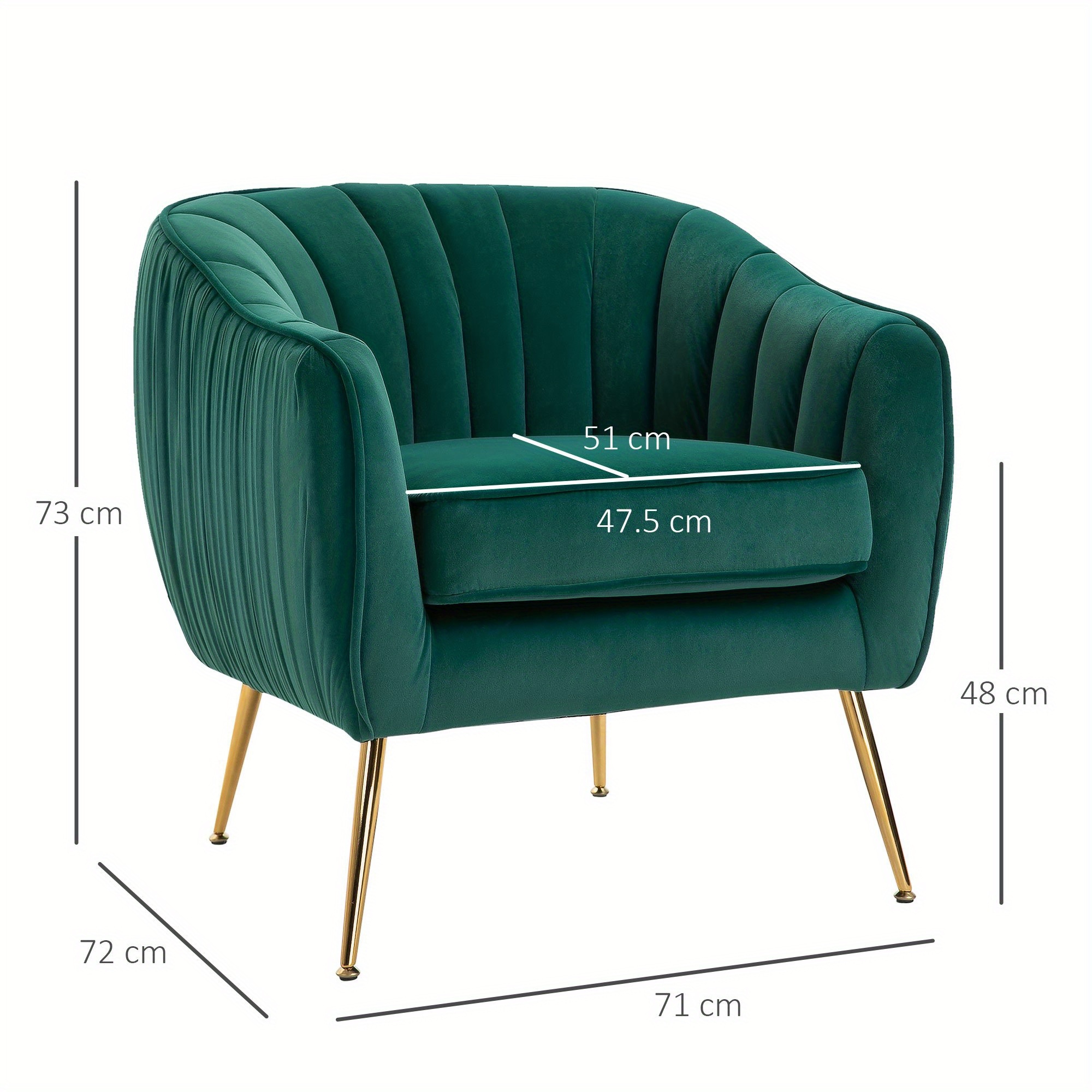 Velvet Tub chair, Luxury Accent Chair with Golden Metal Leg, Comfy Upholstered Armchair with Thick Padded Seat for Living Room, Green