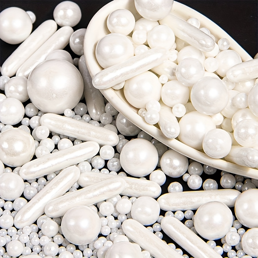75G/2.65Oz Dessert Decoration Kit, Cooking And Baking Decorations, Small And Large Round Bead Cake Decorations, Round Stick Decorations, White Bead Stick Assortment, Suitable for Food Pantry Essentials, Cooking And Baking, Dessert Decoration Kit