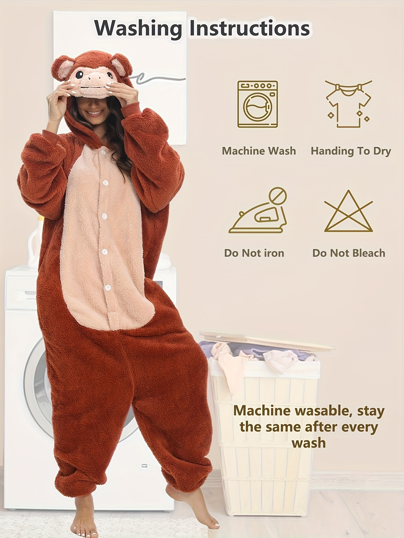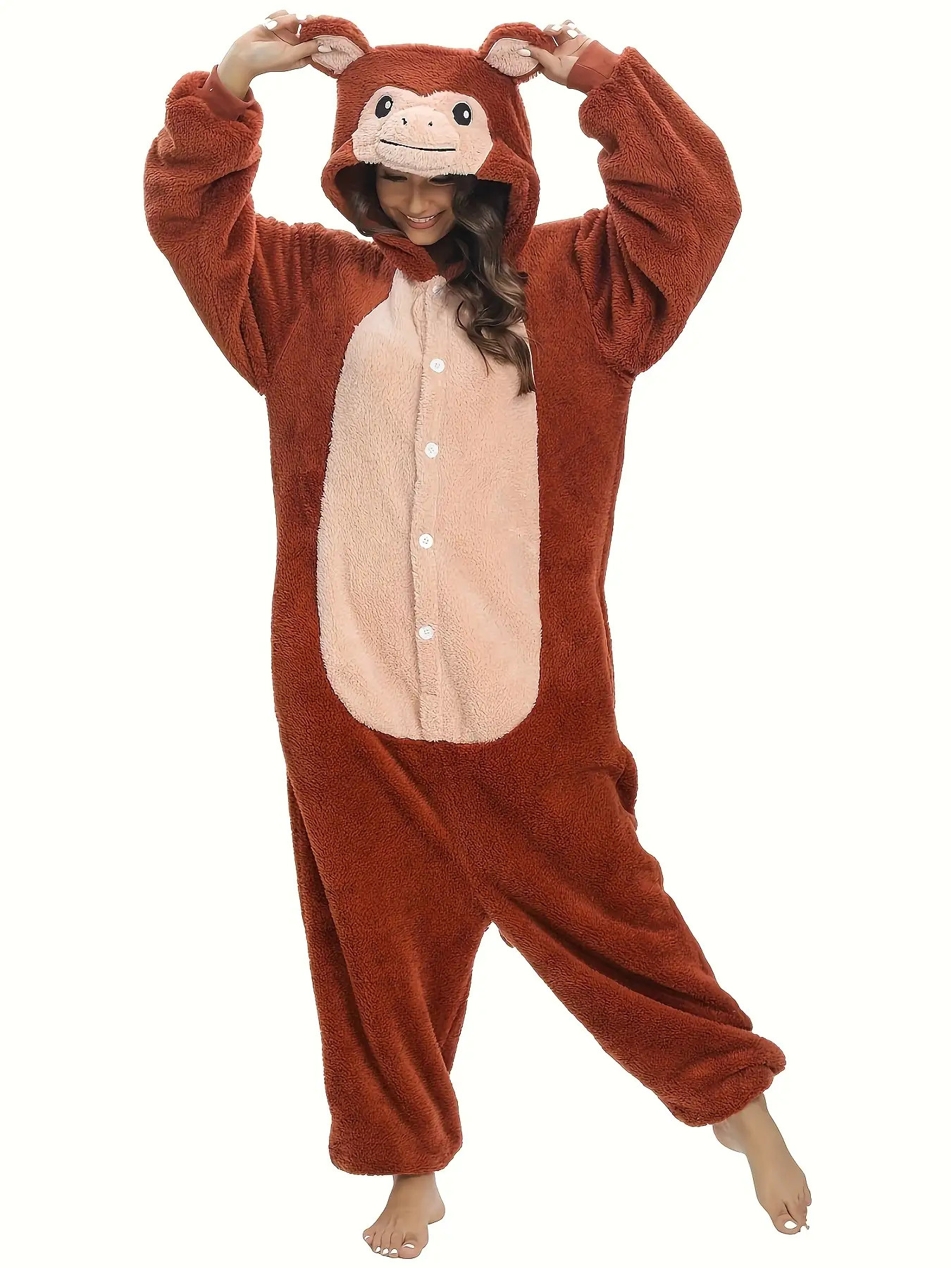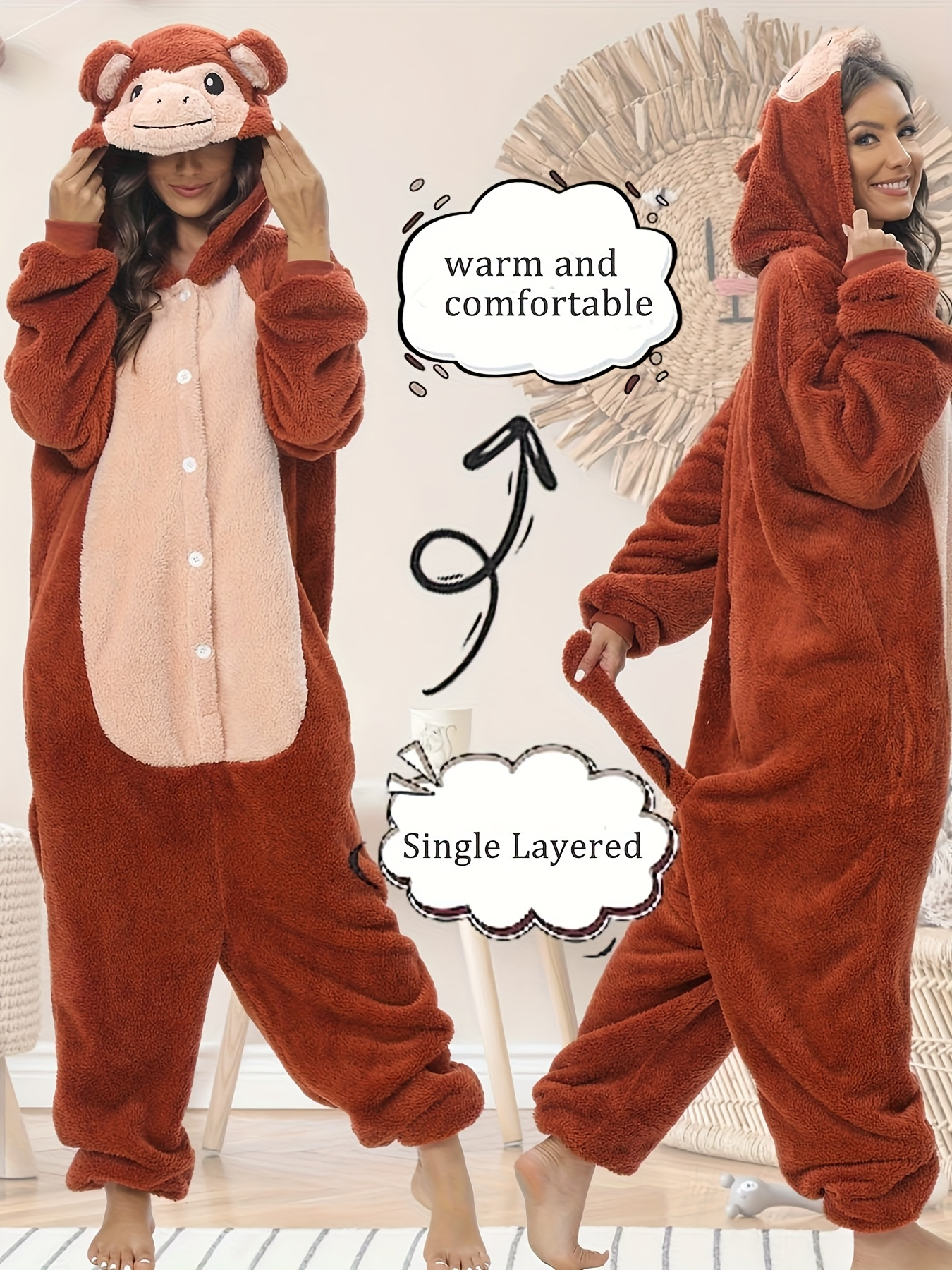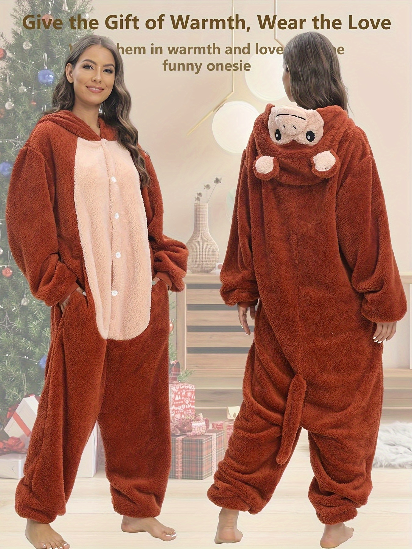 Women's cute monkey hooded plush contrast color jumpsuit, long-sleeved zipper plush warm hooded jumpsuit party pajamas cosplay home clothes, suitable for carnival, Halloween, Carnival Outfit, Halloween Costume, Fun Party Wear, Playful Sleepwear, Durable Sleepwear, Warm Jumpsuit, Zipup Jumpsuit, Longsleeve Jumpsuit, Partygoers, Home Comfort Wear